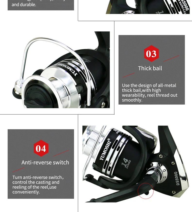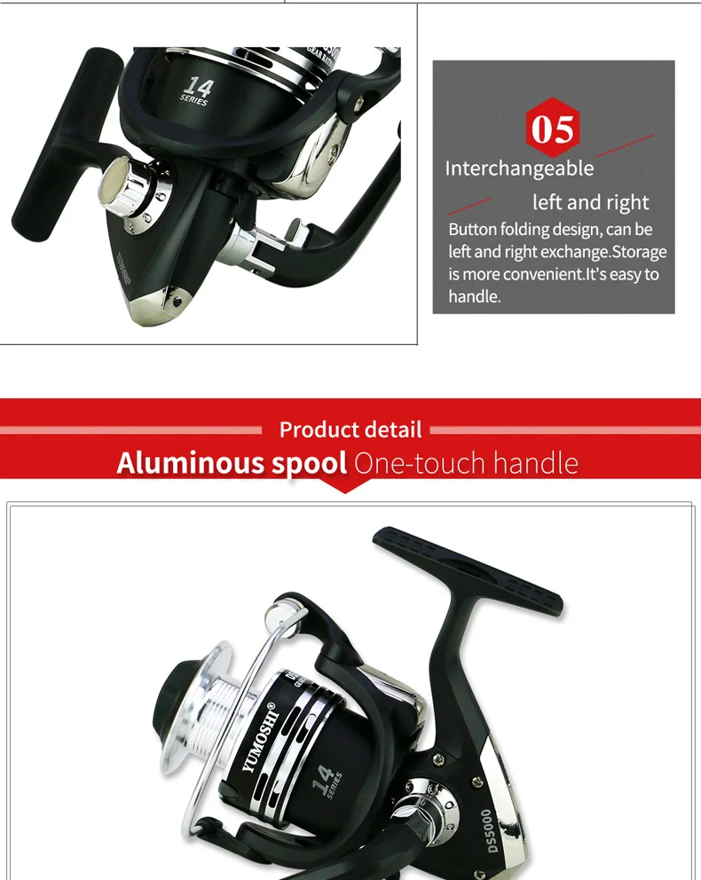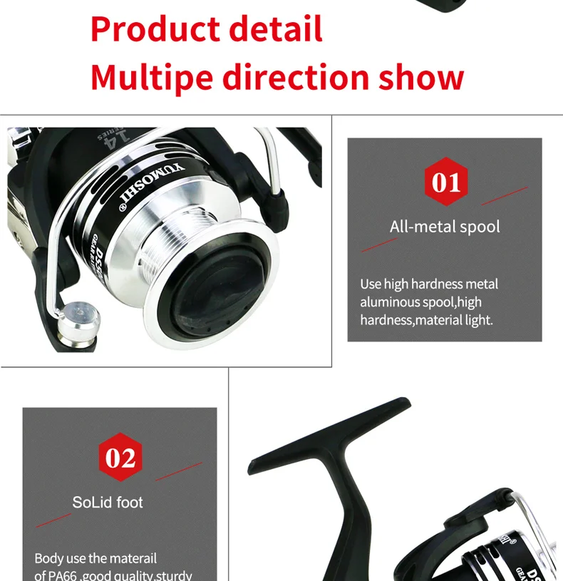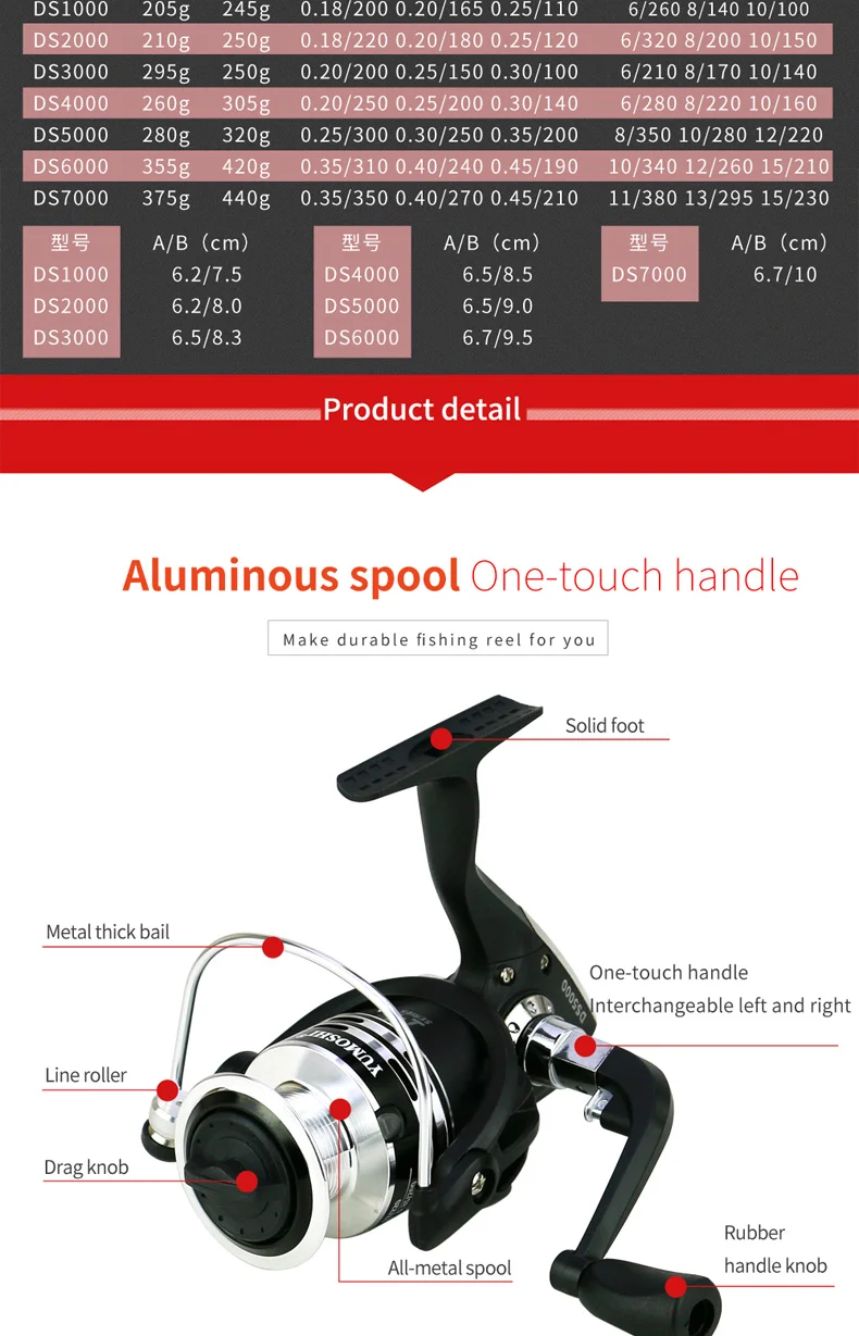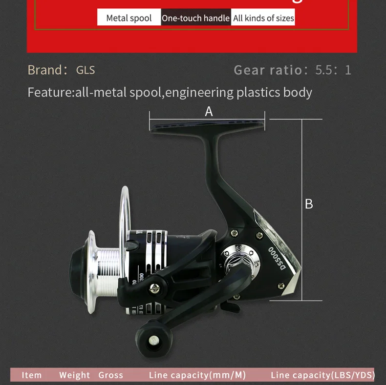 GLS Full Metal Spool 1000-7000 Series Spinning Fishing Reel Gear Ratio 5.5:1 Saltwater/Freshwater Professional Fishing Wheel