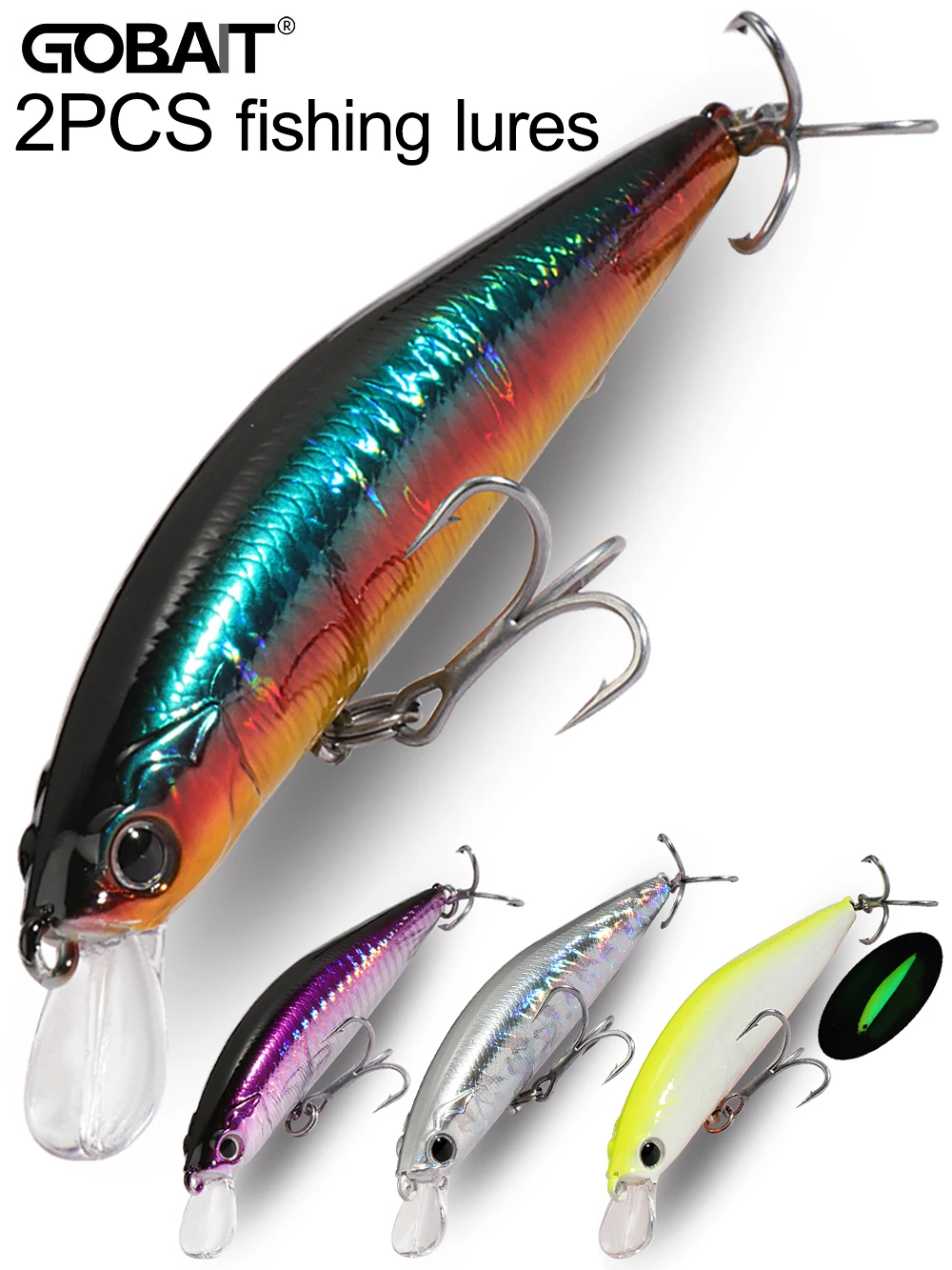 GOBAIT 2 uds señuelo Minnow anzuelos triples swimbait pesca aparejos manivela lucio del mar lubina trucha carpa cebo artificial largo caliente crankbait colgante popper topwater jerkbait con 6# Accesorios de pesca con anzuelo Wobbler profesional