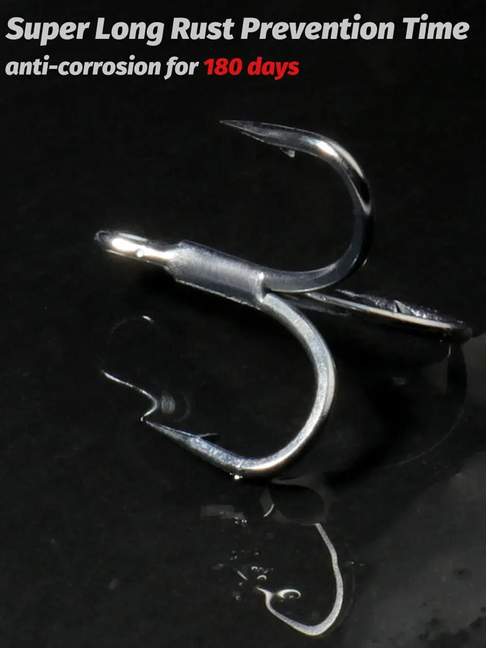 • Material de acero con alto contenido de carbono:Fabricados con acero con alto contenido de carbono, estos anzuelos triples ofrecen durabilidad y resistencia superiores, lo que garantiza un rendimiento confiable durante cada viaje de pesca.