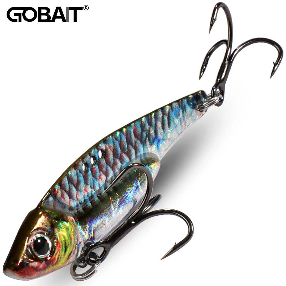 GOBAIT VIB Señuelo de pesca Plantilla de metal que se hunde Swimbait Blade Cast spinning anzuelos triples cuchara giratoria aparejos de VIBRACIÓN Pesca cebo duro Lucio de mar lubina trucha Popper accesorios profesionales Wobbler cebo Artificial