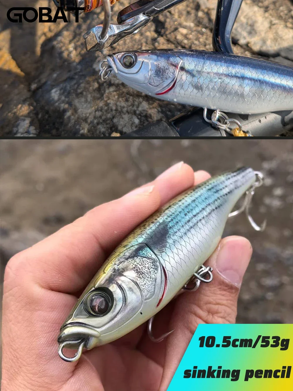 GOBAT señuelo de lápiz hundido 53g 10,5 cm Popper anzuelo de agua salada Swimbait Pesca Plopper lanzamiento largo Whopper pesca en el mar Crankbait anzuelo triple aparejos pescador cebo de silicona