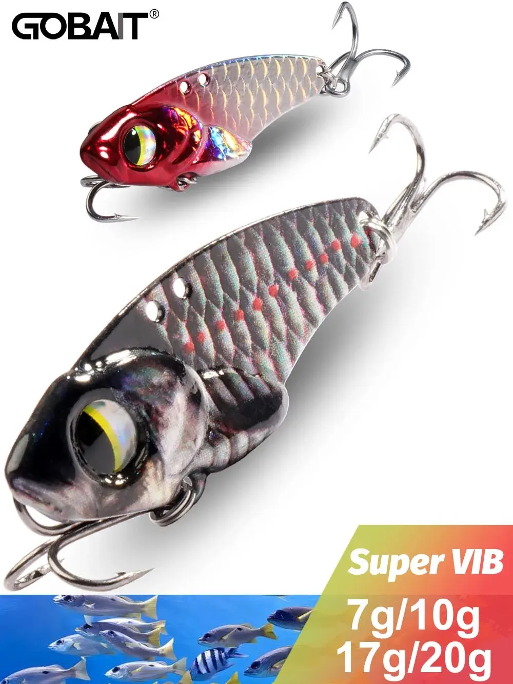 GOBAIT señuelo ojos 3D cuchara Spinner pintura láser VIB lucio cebo duro agua de mar carpa aparejos de pesca anzuelos triples trucha Spinnerbait