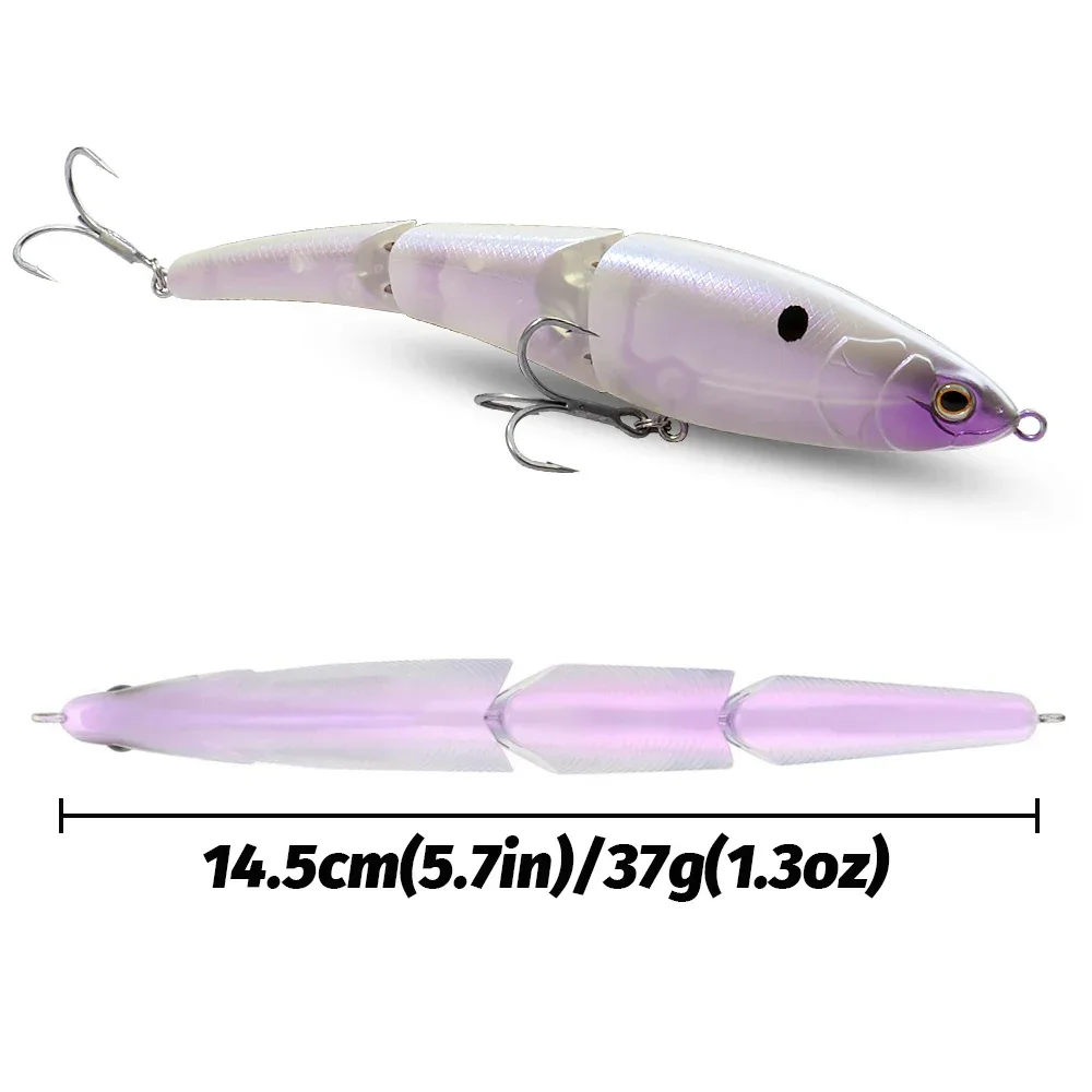 Diseñado con un cuerpo multiarticulado de 3 segmentos, el señuelo de pesca TRUSCEND puede hundirse lentamente y moverse de manera flexible en el agua.Además, las acciones de natación realistas hacen que atraiga más capturas y provoque a los peces depredadores a atacar.