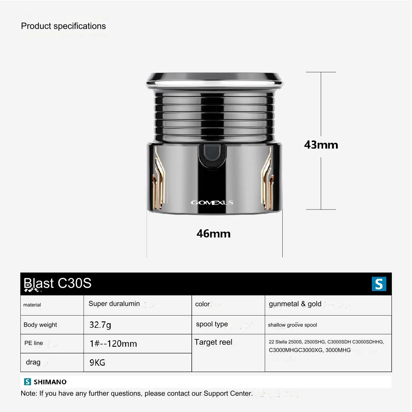 Gomexus-Bobina súper duradera para Shimano, C30S, 22 Stella 2500-3000, C3000, Shippu
