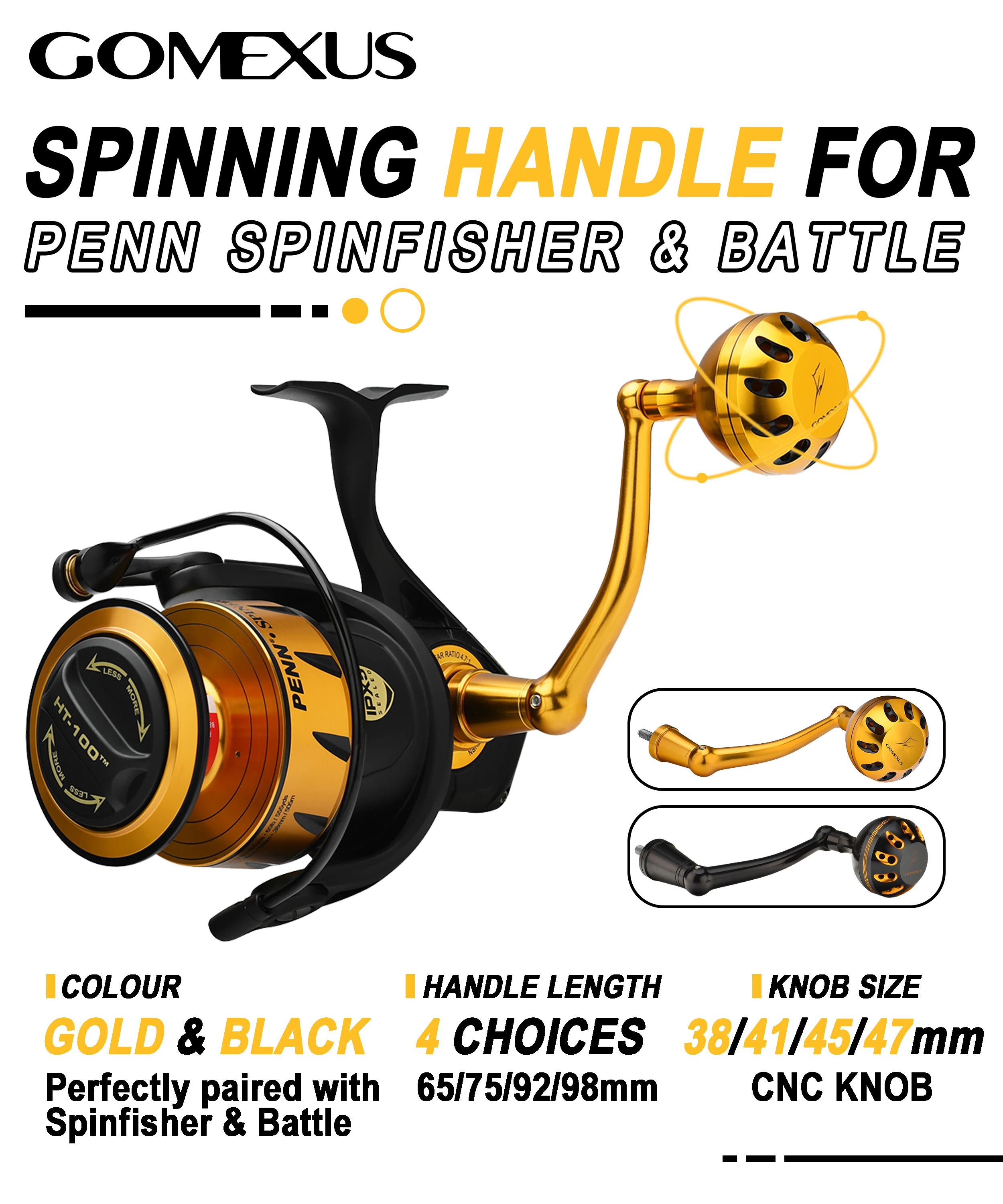 【Más torque】El mango Gomexus está diseñado más largo que el mango original, lo que proporciona más torque para luchar. Una vez que lo use, ganará fácilmente la batalla con peces grandes.