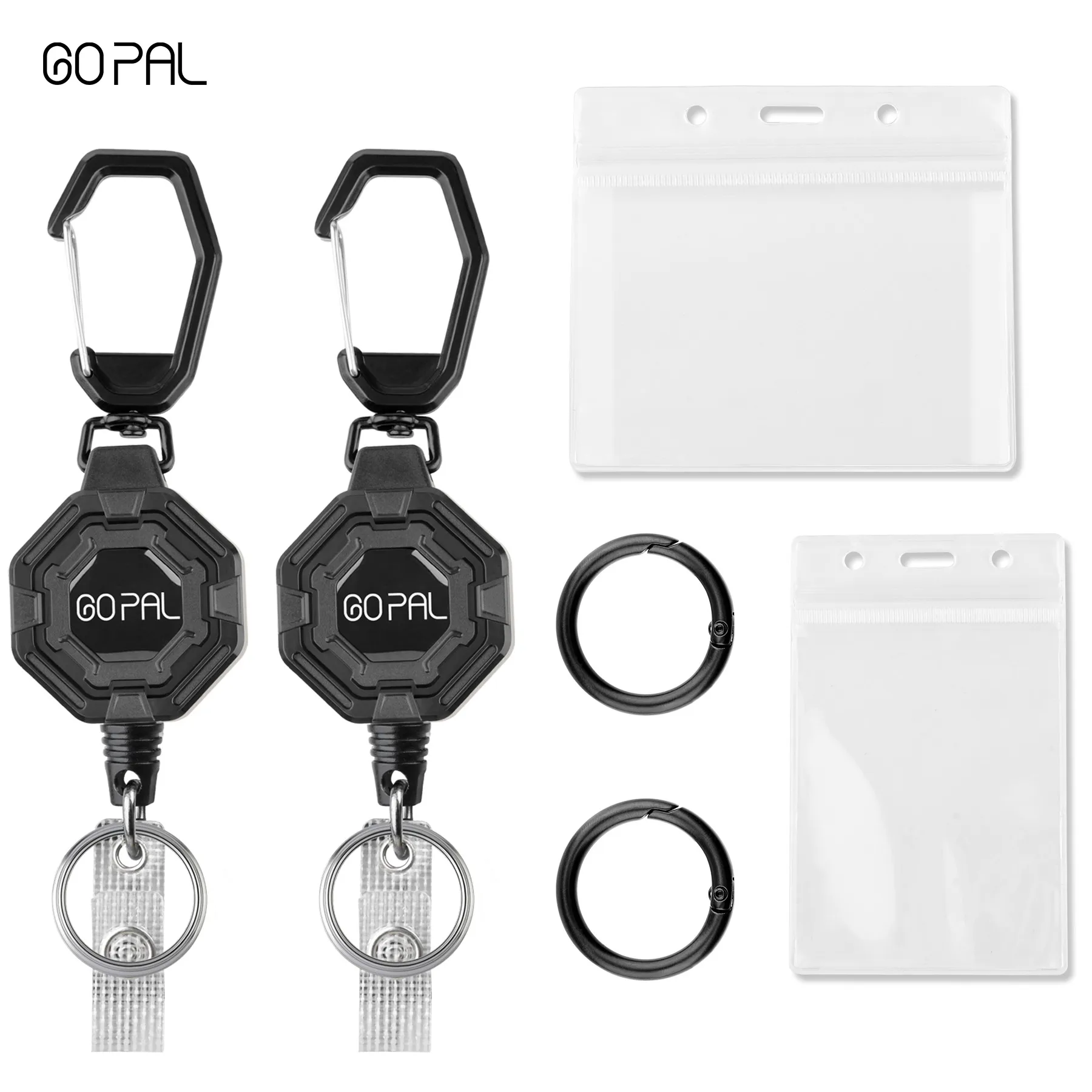 Gopal-llavero retráctil para tirar de la insignia, carrete de identificación, cordón, etiqueta de nombre, fundas protectoras multiusos para tarjetero de identificación de trabajo