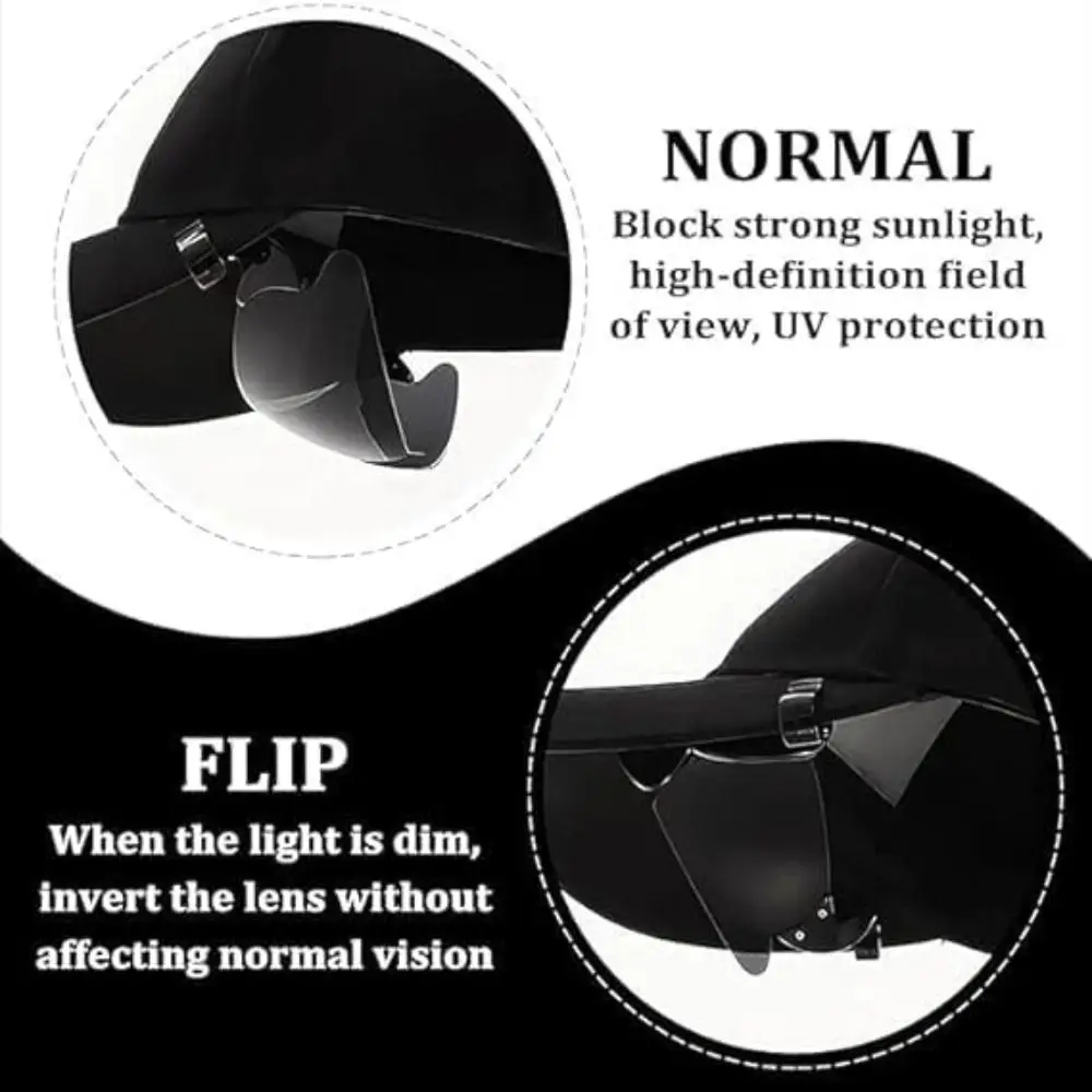 Dual Functionality: Enjoy the convenience of sunglasses and a sun hat in one with our Clip Cap Sunglasses. The flip-up visor design allows you to switch between shaded eyes and full face protection effortlessly.
