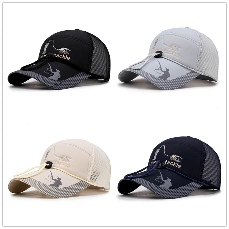 2021 nueva gorra de pesca de malla con cordón ajustable deportes visera sombrero Unisex pesca deporte béisbol gorras multifunción