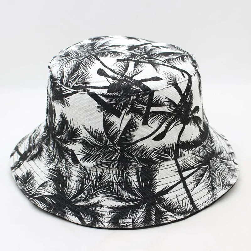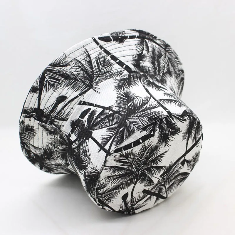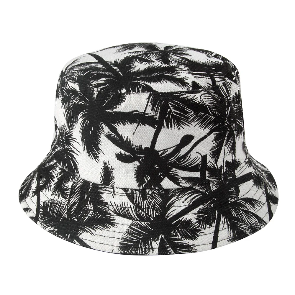 Gorras de pescador con estampado de árbol de coco negro de doble cara Reversible Unisex, sombreros de cubo para hombres y mujeres, visera de viaje al aire libre, sombrero para senderismo