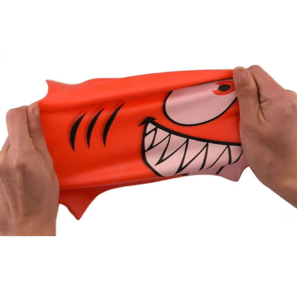 Gorro de natación de tiburón de dibujos animados para niños, gorro de piscina de silicona para niños, impermeable, protege las orejas, equipo de natación para niños y niñas