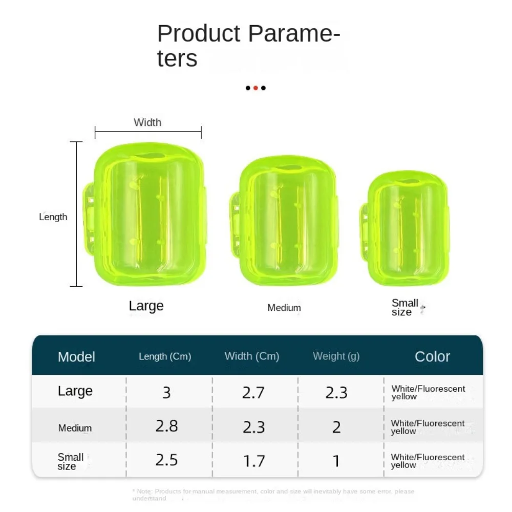 10 tapas para cubrir y proteger los anzuelos de señuelos para camarones. También puede proteger sus manos para que los ganchos se rayen. Fabricado en plástico, ligero y cómodo de usar. Material: plástico Tamaño de la cubierta: como muestra la imagen tamaño: S M L Longitud: 2,5/2,8/3 cm (0,98/1,10/1,18 pulgadas) Ancho: 1,7/2,3/2,7 cm (0,67/0,91/1,06 pulgadas) Peso del mosquetón: 1/2/2,3 g Paquete incluido: 10 cubiertas de ganchos.