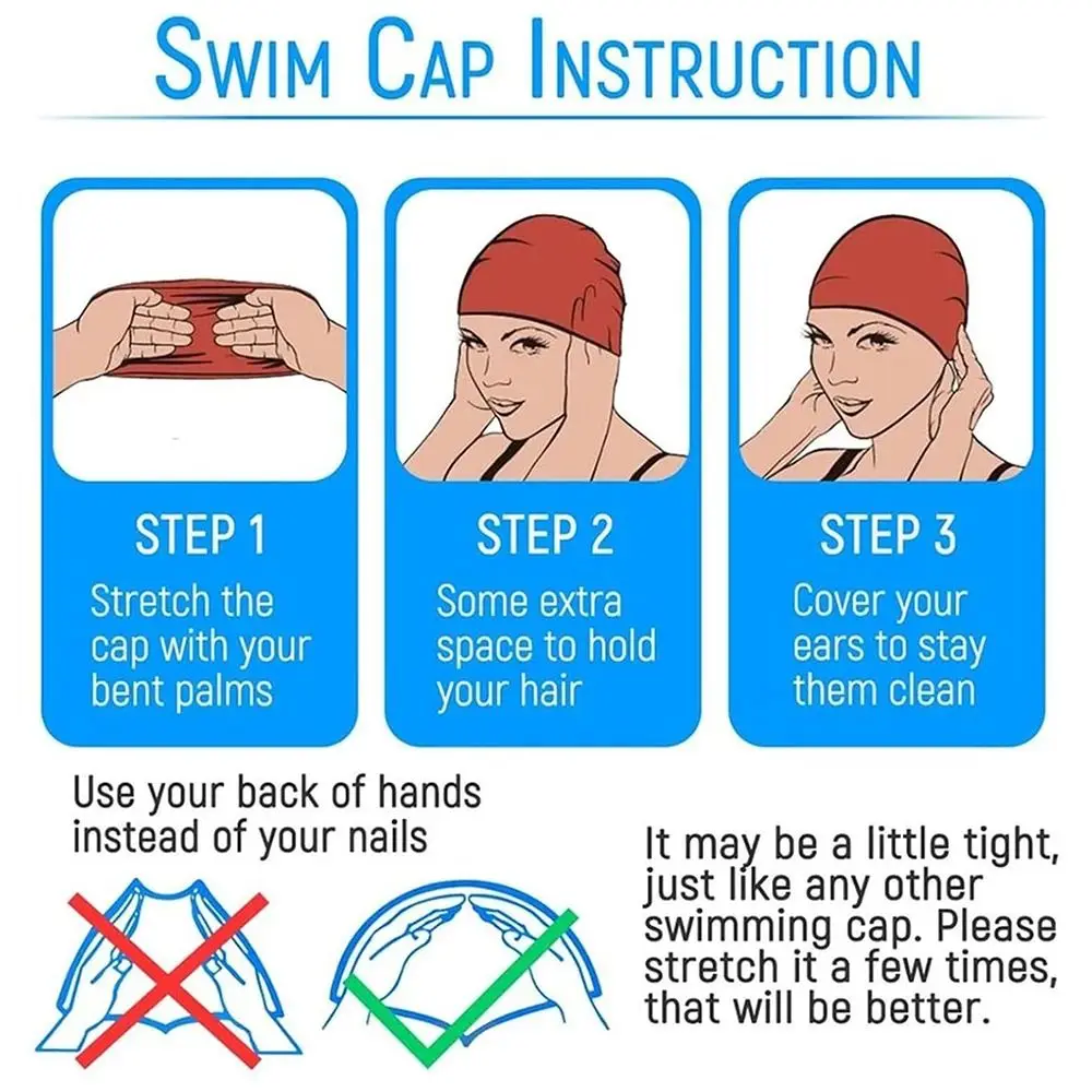 3. Premium & Thicker Silicone Material: swim cap is made from high-quality eco-friendly silicone material, which features durable, tear-resistant and anti-aging. Great elasticity makes it stretch easily, no deformation after repeated use. The silicone material is also odorless, non-toxic, skin-friendly, so our premium swim cap is safe to use!