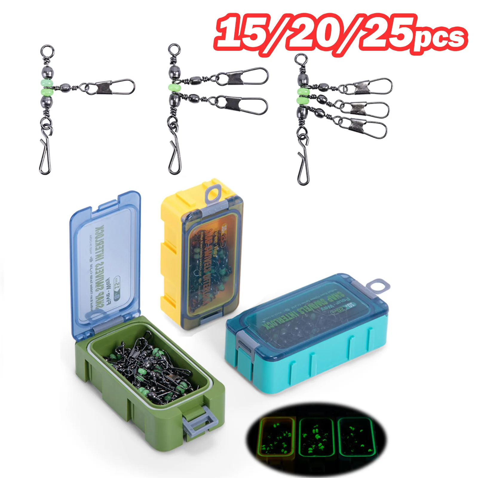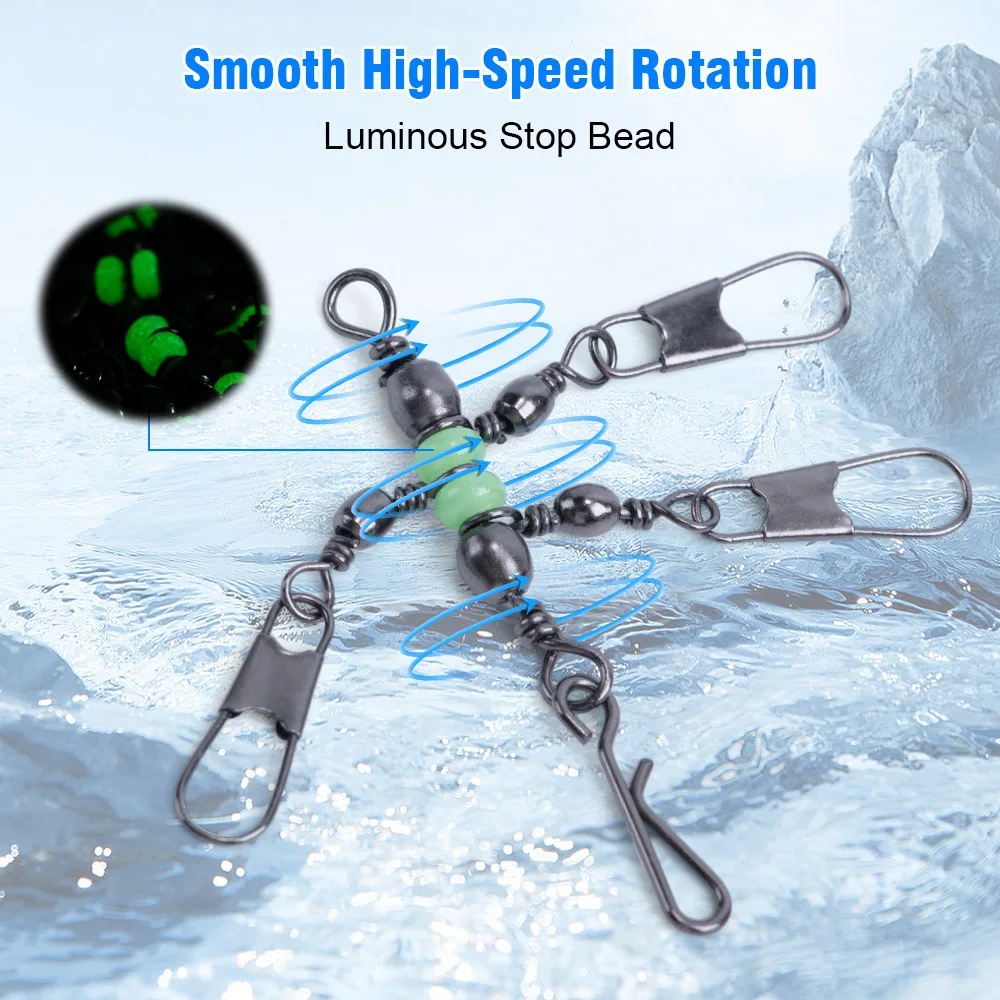 Goture 1/caja de giratorios de pesca con forma de calabaza, giratorios de pesca luminosos, rotación de 360 grados, giratorios redondos, accesorios de aparejos de pesca