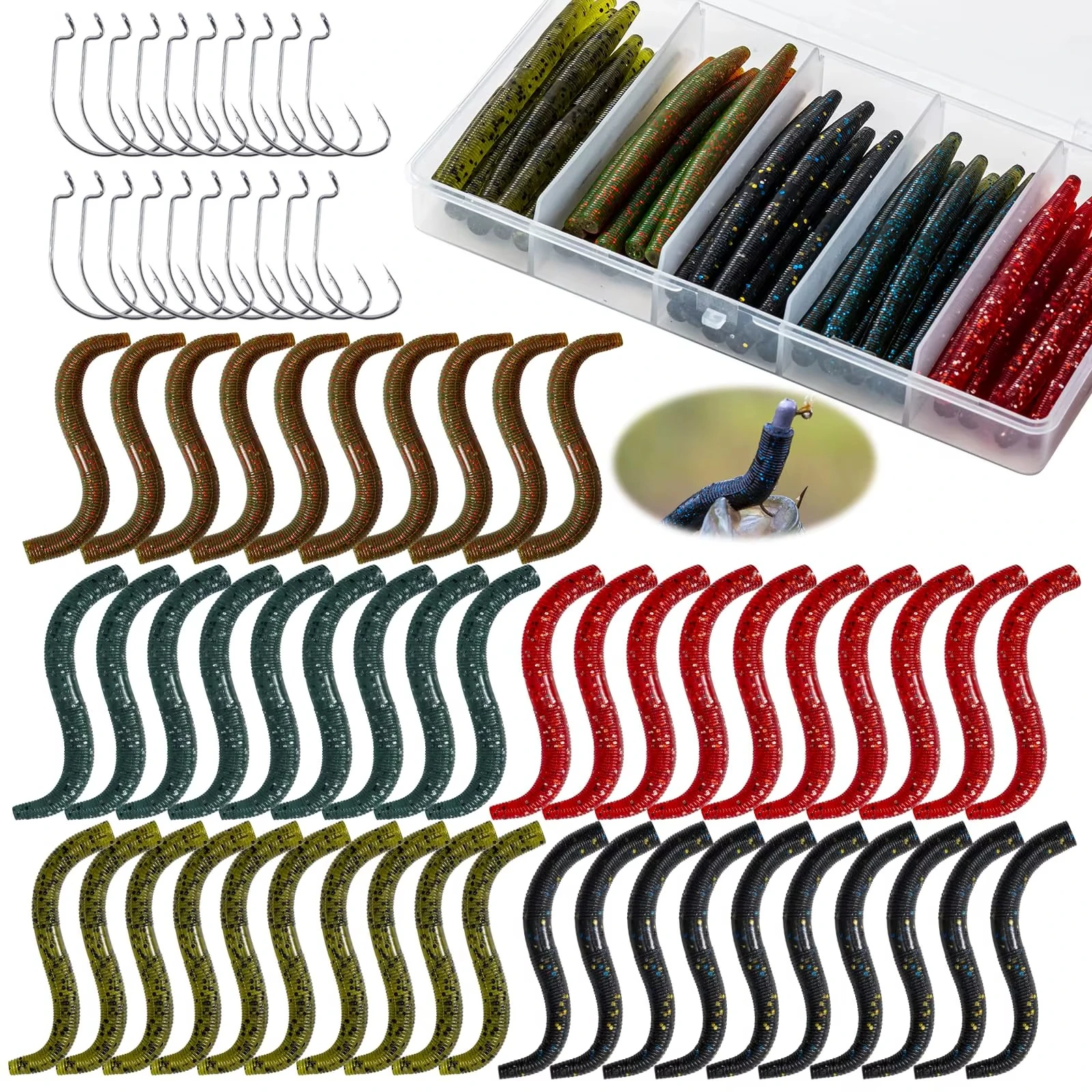 Goture, 1 caja de Señuelos de Pesca blandos, pesca en roca, Swimbait, cebos de Jigging, gusano suave, cabeza de anzuelo de agua salada, señuelo con gancho