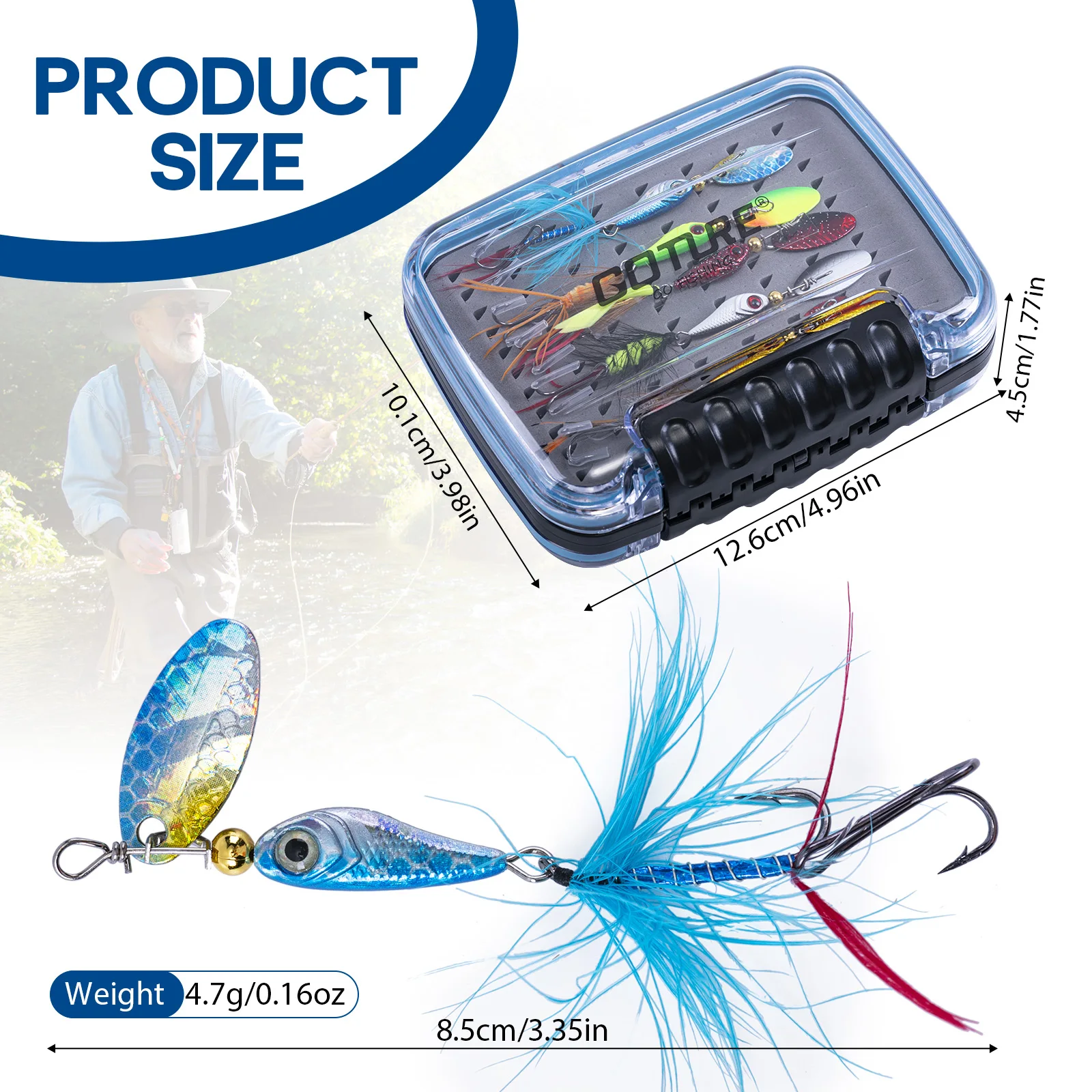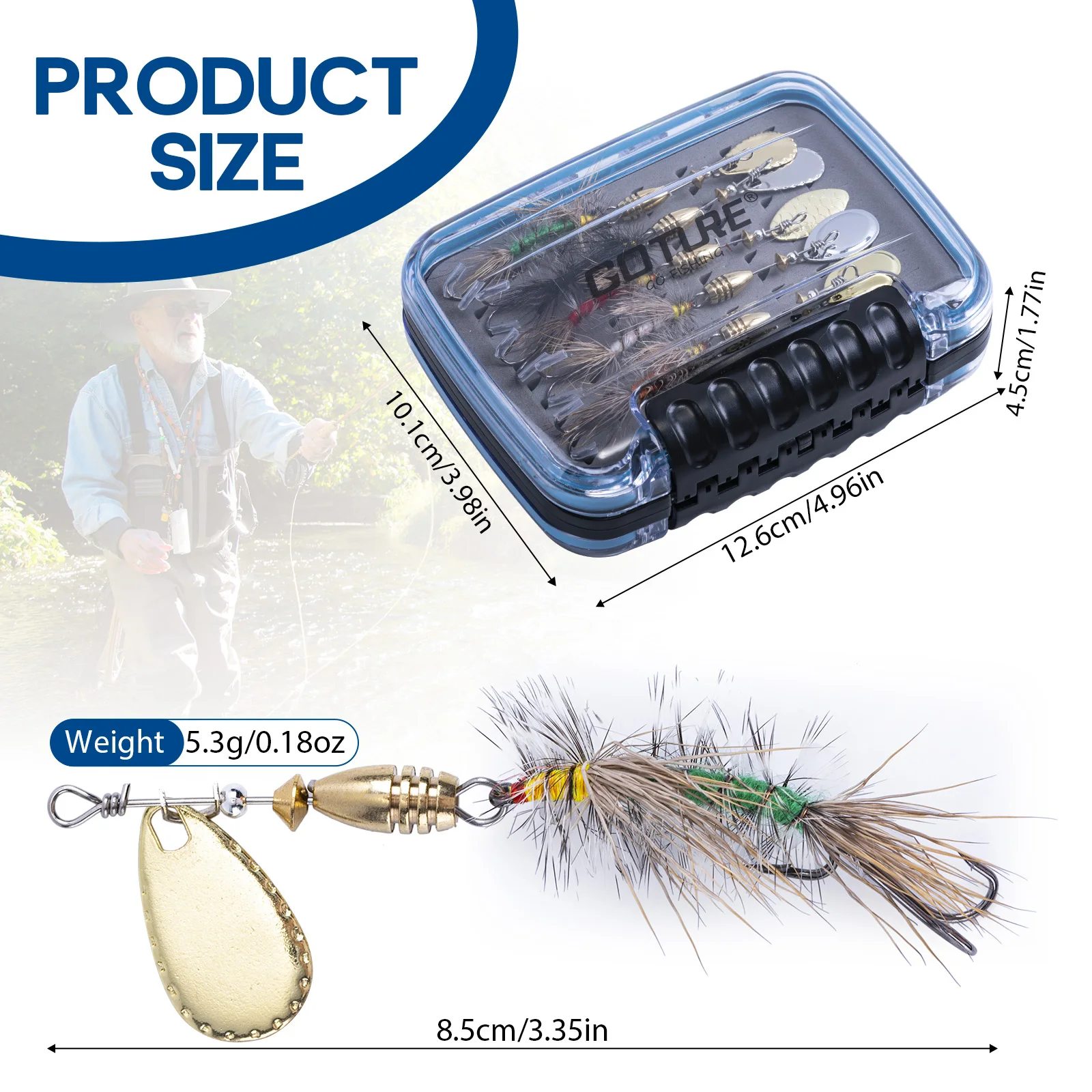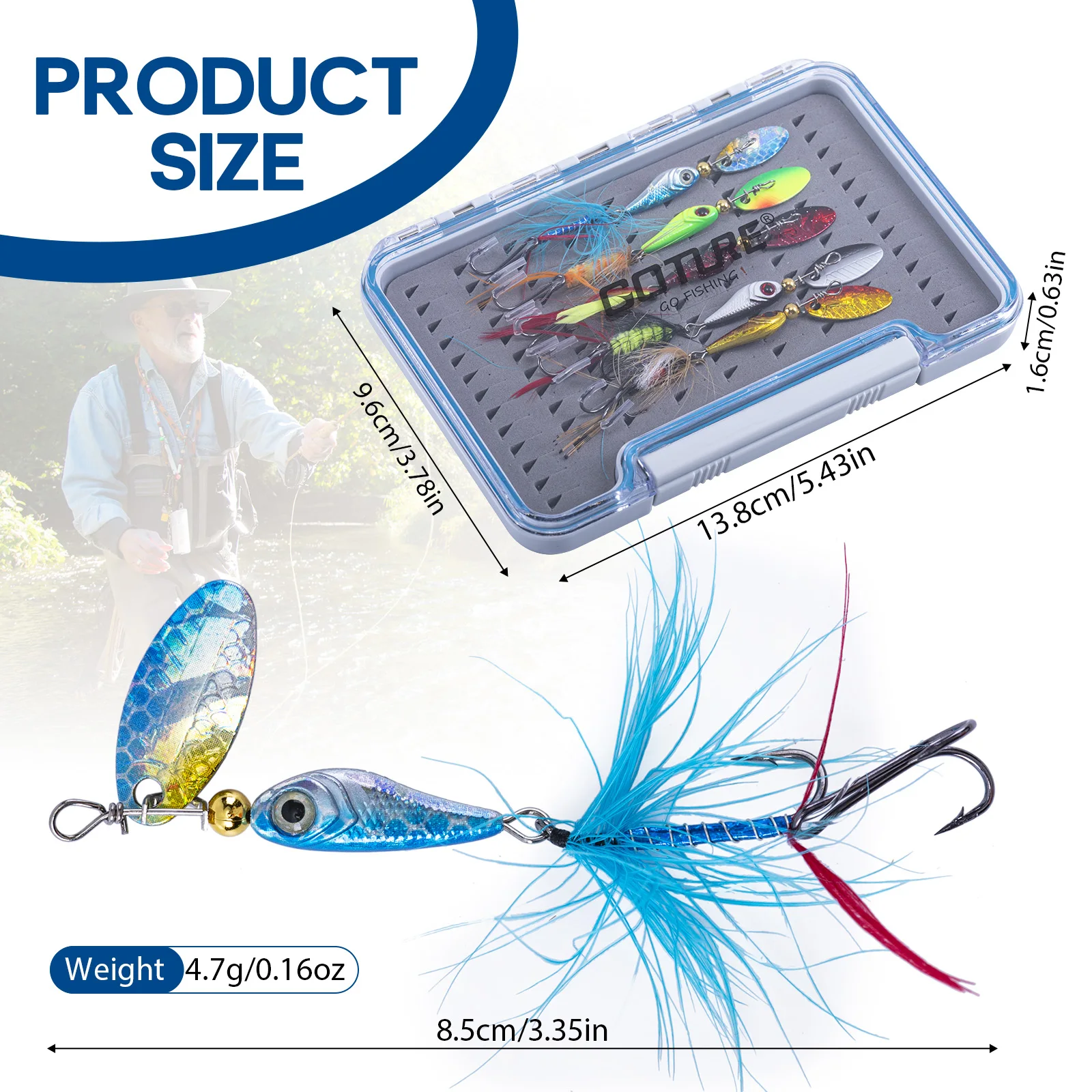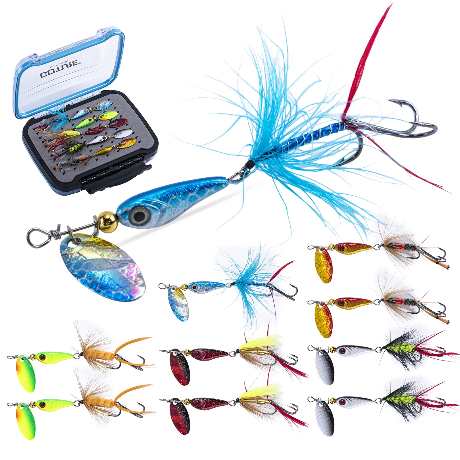 Amplia gama de aplicaciones: Los señuelos giratorios son perfectos para agua dulce. Ideal para la mayoría de especies como trucha, lubina, lucio, tipo de pez, bagre, bluegill, pez sol, etc. Paquete combinado en caja de moscas ABS de alta calidad, la mejor opción para regalar a familiares y amigos que aman la pesca.