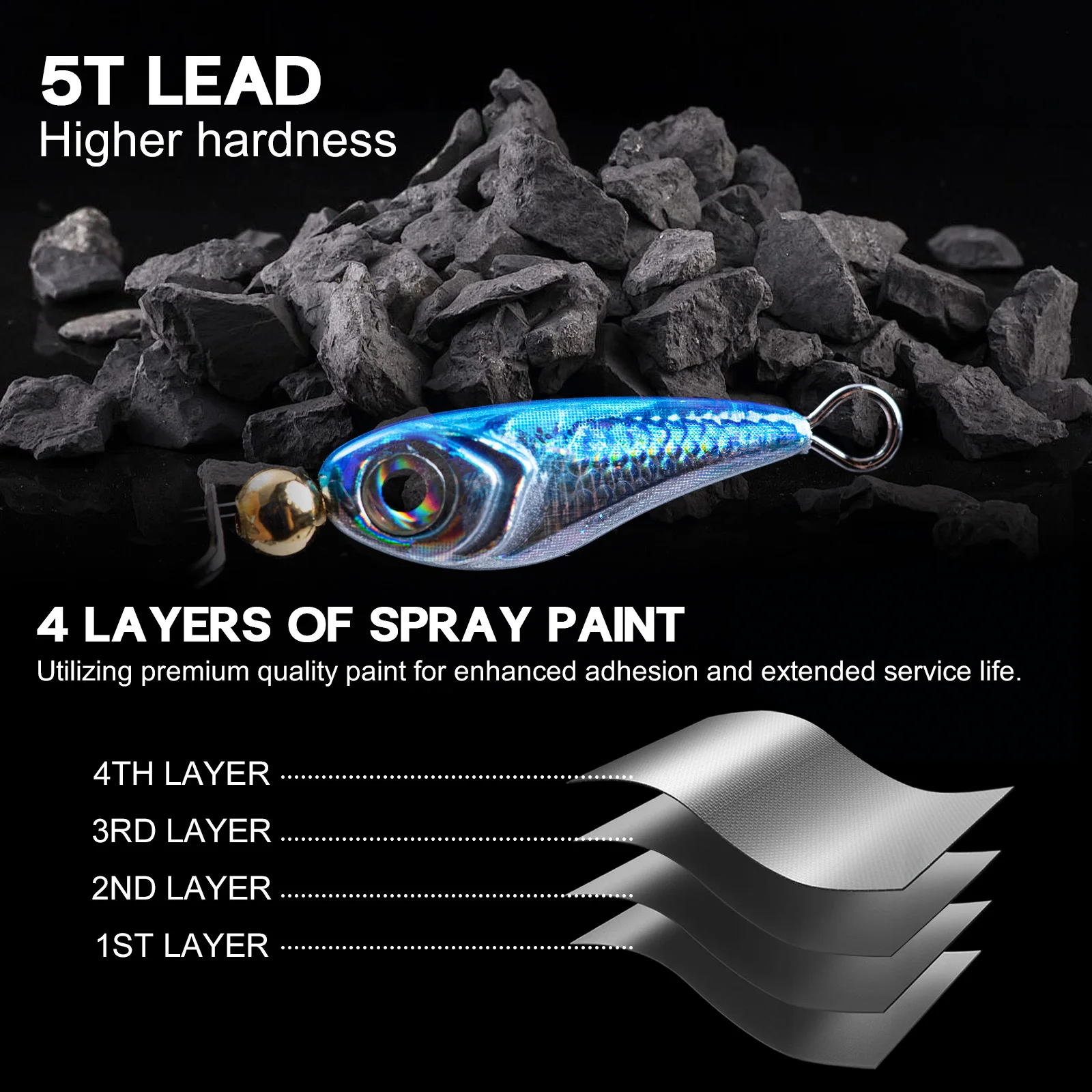 Gancho doble adicional para una tasa de conexión más alta: Según el anzuelo simple, agregamos un anzuelo doble en estos señuelos de pesca con cola de gallo.El anzuelo de arrastre más afilado coopera con el anzuelo principal para aumentar la posibilidad de enganchar el cebo y también puede enganchar el pez firmemente.