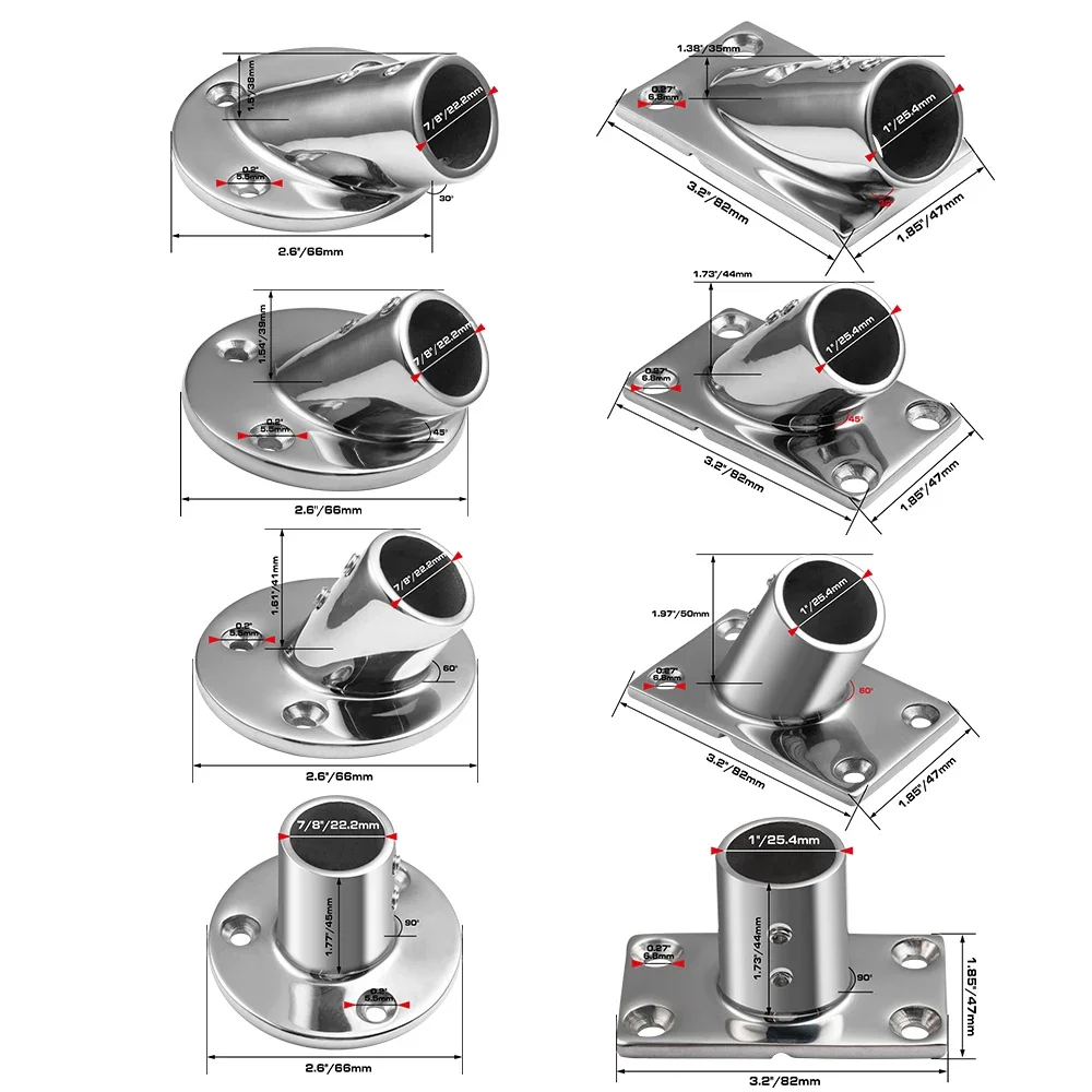 Goture, 1 pieza, montaje de pasamanos para barco, 35/45/60/90 grados, acero inoxidable, 7/8 "/1", Base redonda/rectangular, Hardware de barandilla para yate y barco