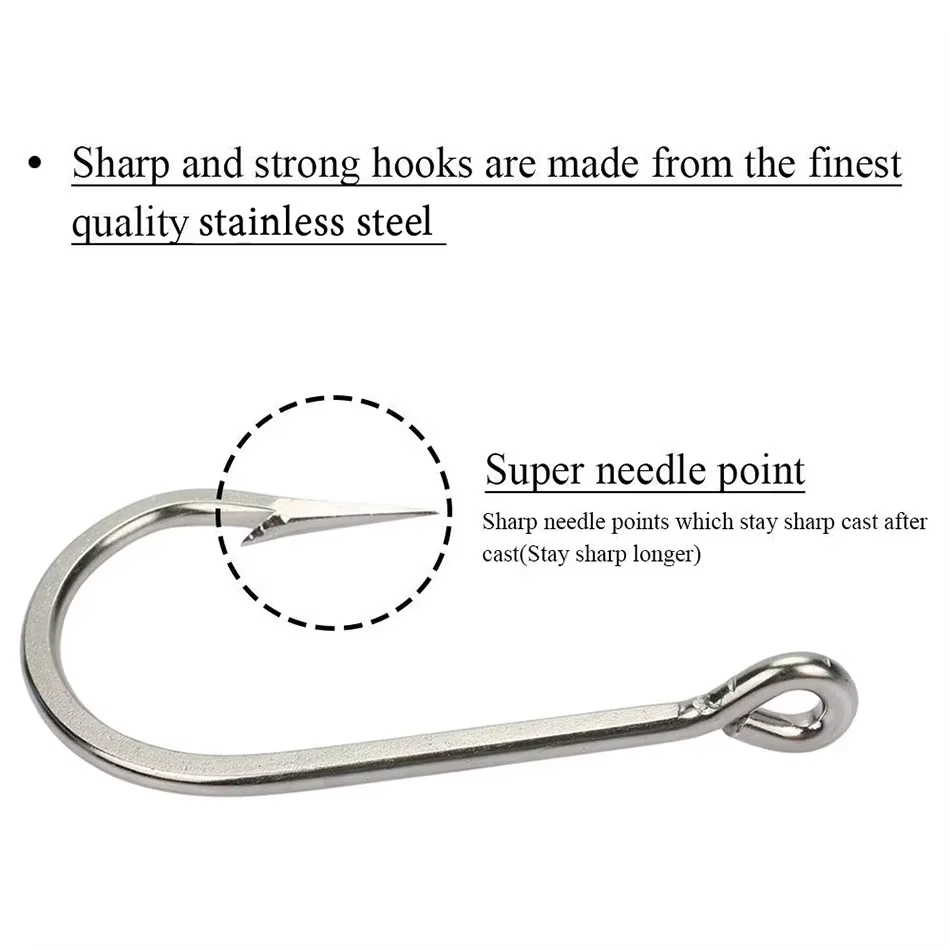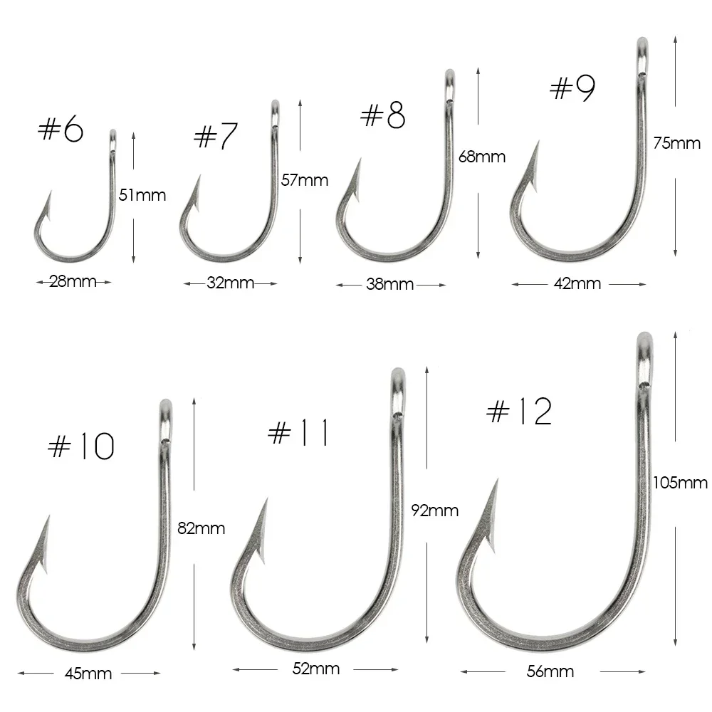 Goture 10 unids/lote anzuelo de pesca de acero inoxidable alto tamaño #6-#12 anzuelos de vástago largo extremadamente afilados para agua dulce y agua salada