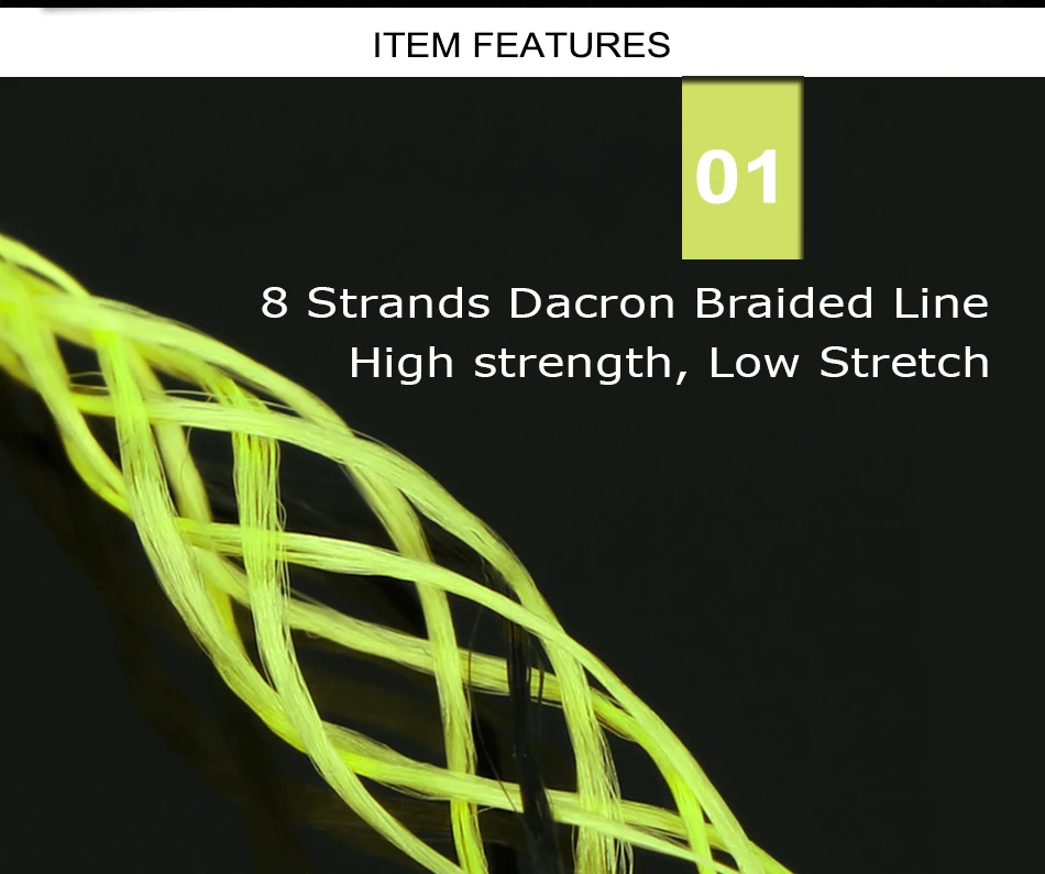 Línea trenzada Dacron de 8 hebras, alta resistencia, baja elasticidad