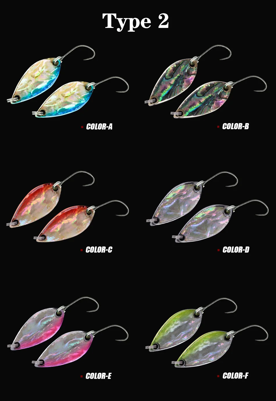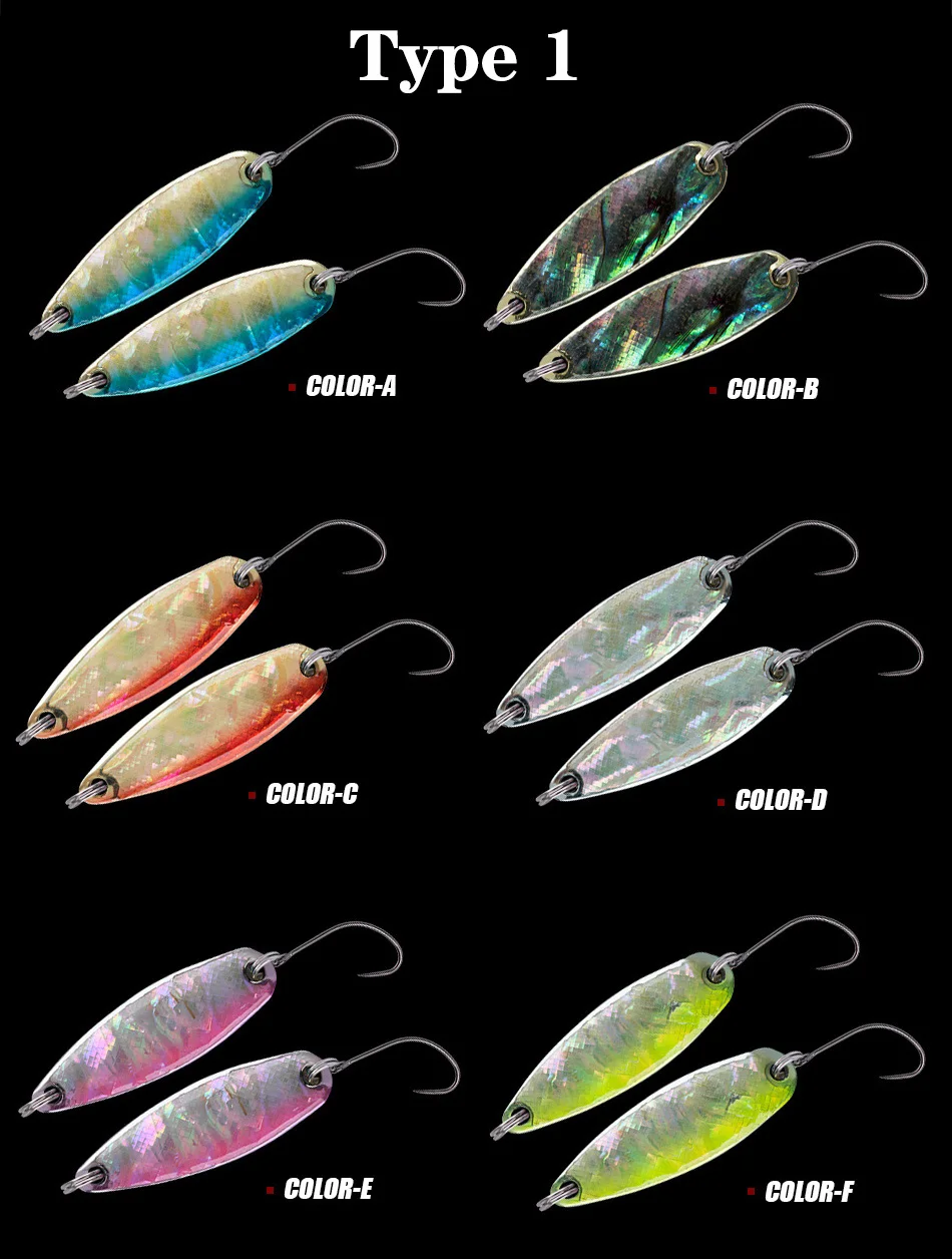 12 Señuelos de Pesca de cuchara (6 colores, cada uno de los dos colores es de los dos).
