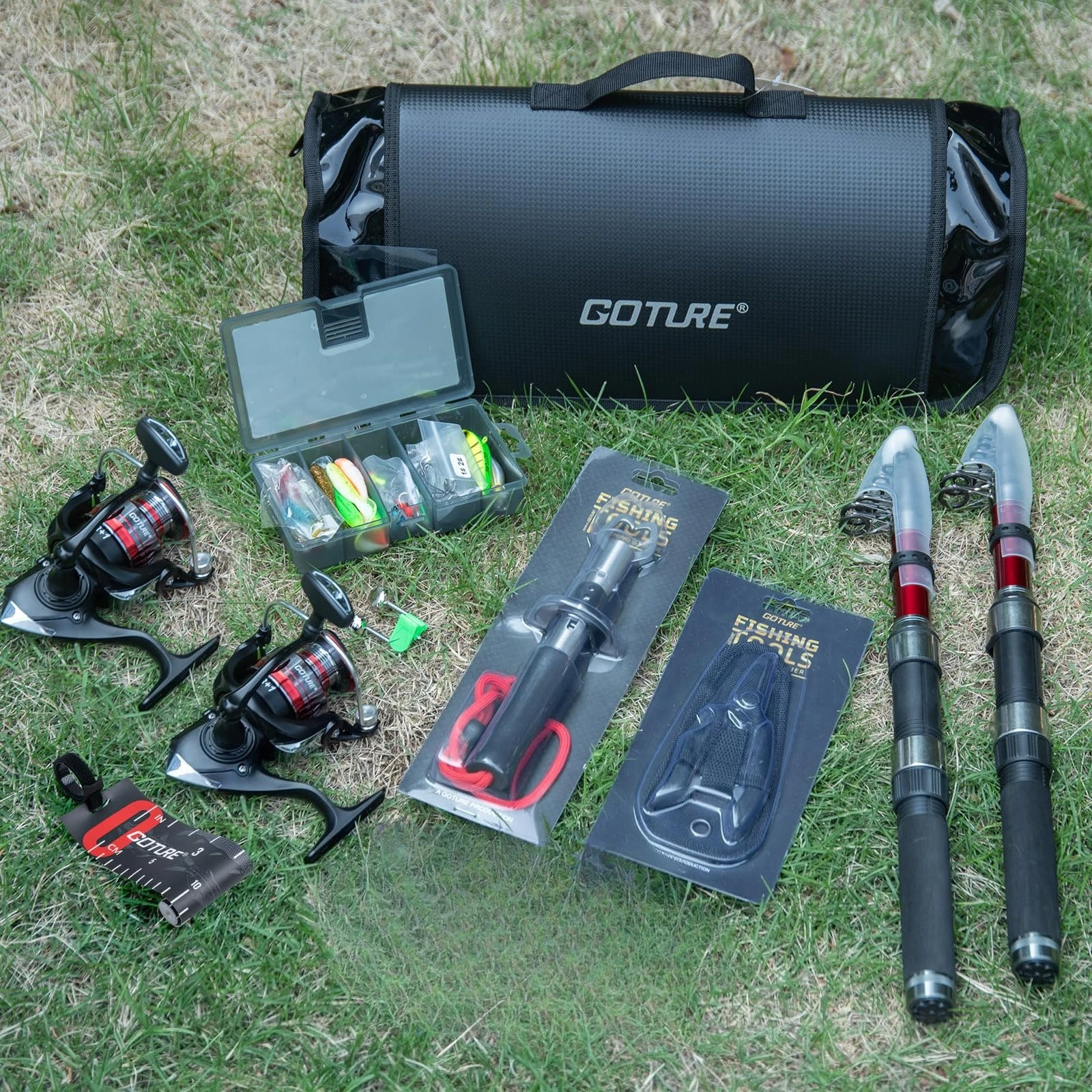Goture 2 uds caña de pescar y 2 uds carrete Combos aparejos juego completo cañas telescópicas carrete giratorio con bolsa de transporte para pesca de viaje