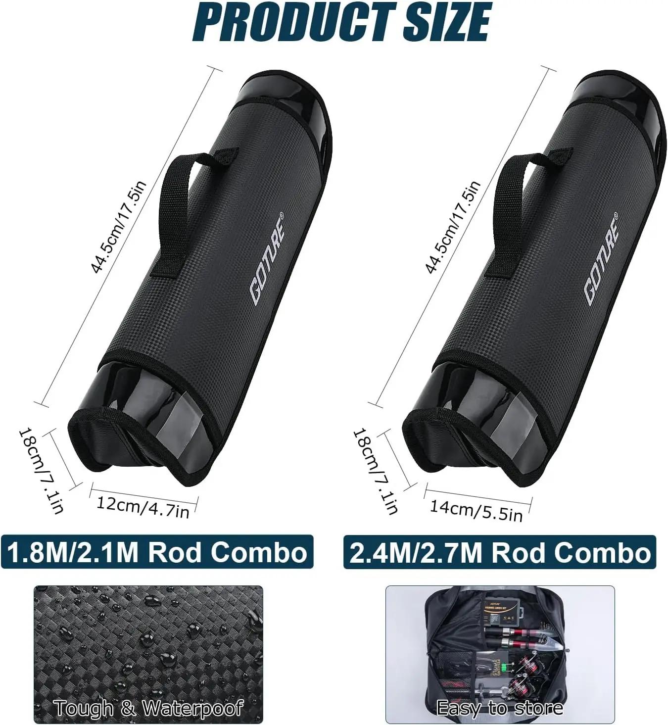 Goture, 2 uds., Combos de carrete de caña de pescar negra y roja, Kit telescópico preenrollado de 1,8 M-2,7 M, herramienta de señuelo, regalos de agua dulce y salada para viajes