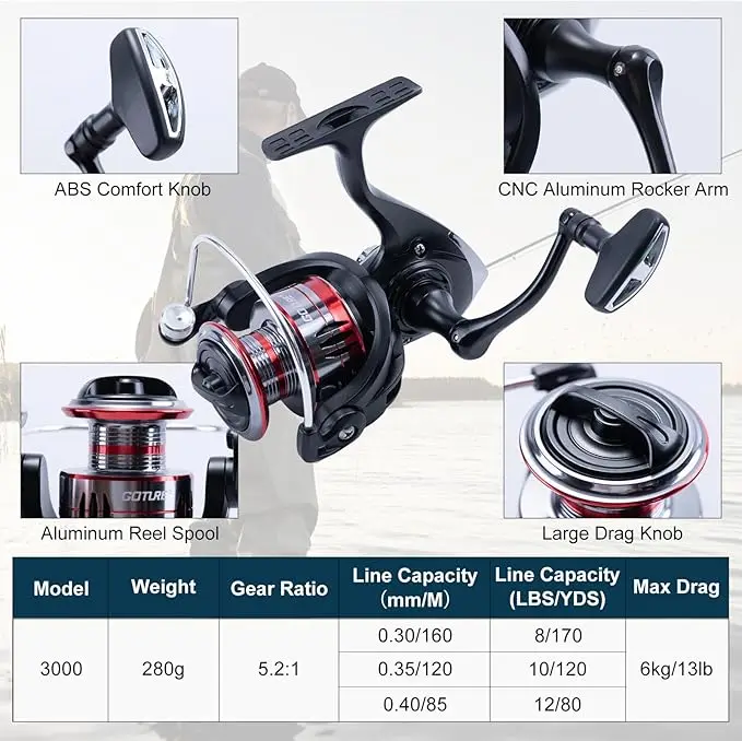 Carrete giratorio súper suave: el carrete de aleación de aluminio es suave para proteger el hilo de pescar contra roturas y deformaciones.La relación de transmisión 5,2:1 proporciona al carrete de pesca un rendimiento ultrasuave.El mango intercambiable y la perilla antideslizante garantizan comodidad durante sesiones de pesca prolongadas.