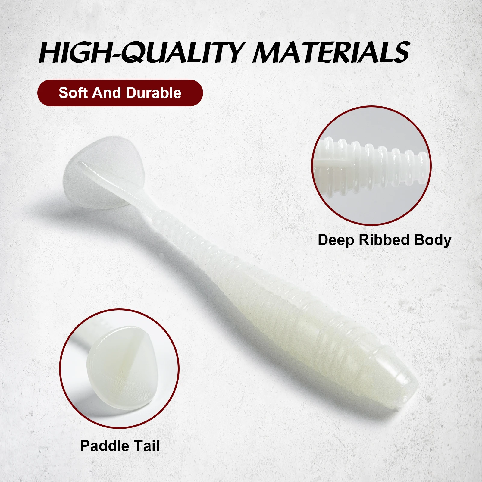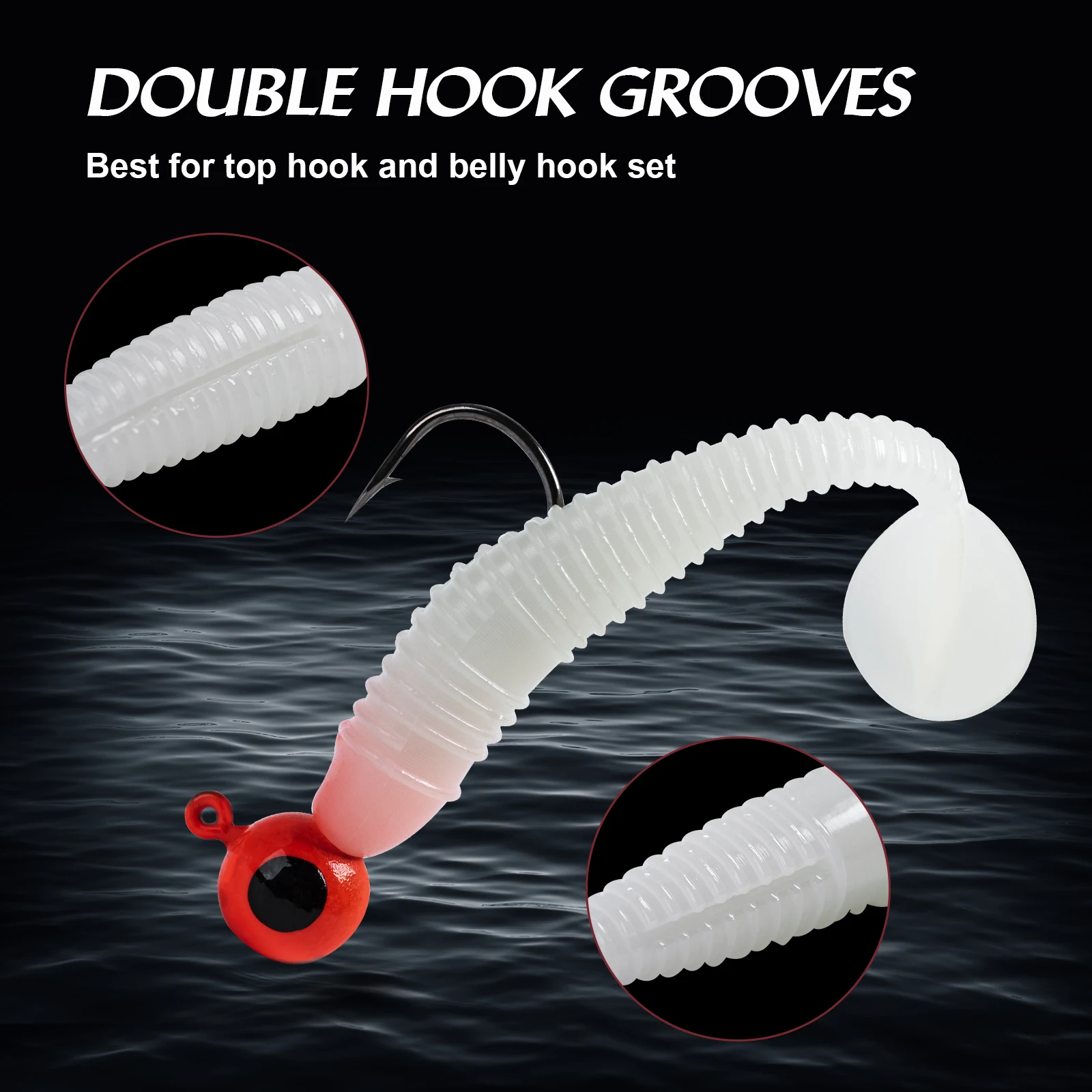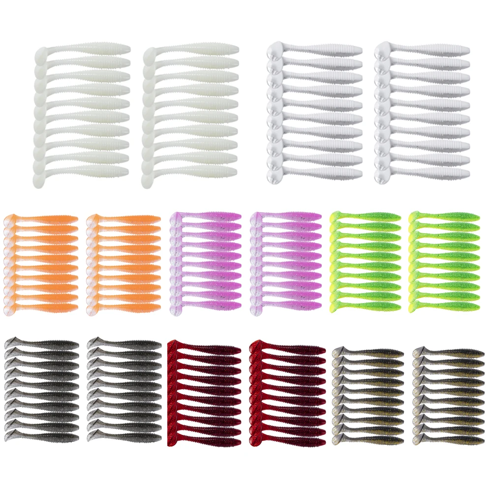 Goture 20 unids/lote Señuelos de Pesca suaves cola en T gusano cebo suave 55mm 65mm Wobblers carpa señuelo de pesca de silicona Artificial Swimbait