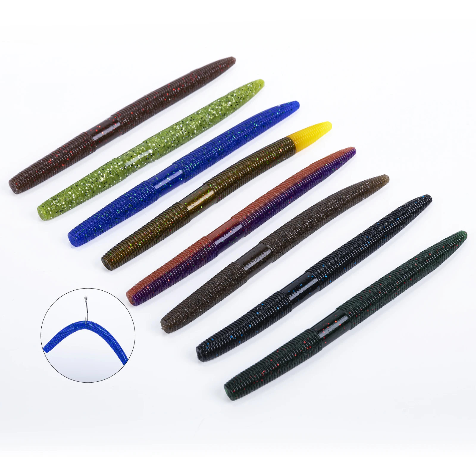 Goture 24 unids/set cebo blando de gusano 13,5 cm 5,3 pulgadas cebo de cola de hundimiento lento desgarradura realista pesca Artificial señuelos blandos Wobblers