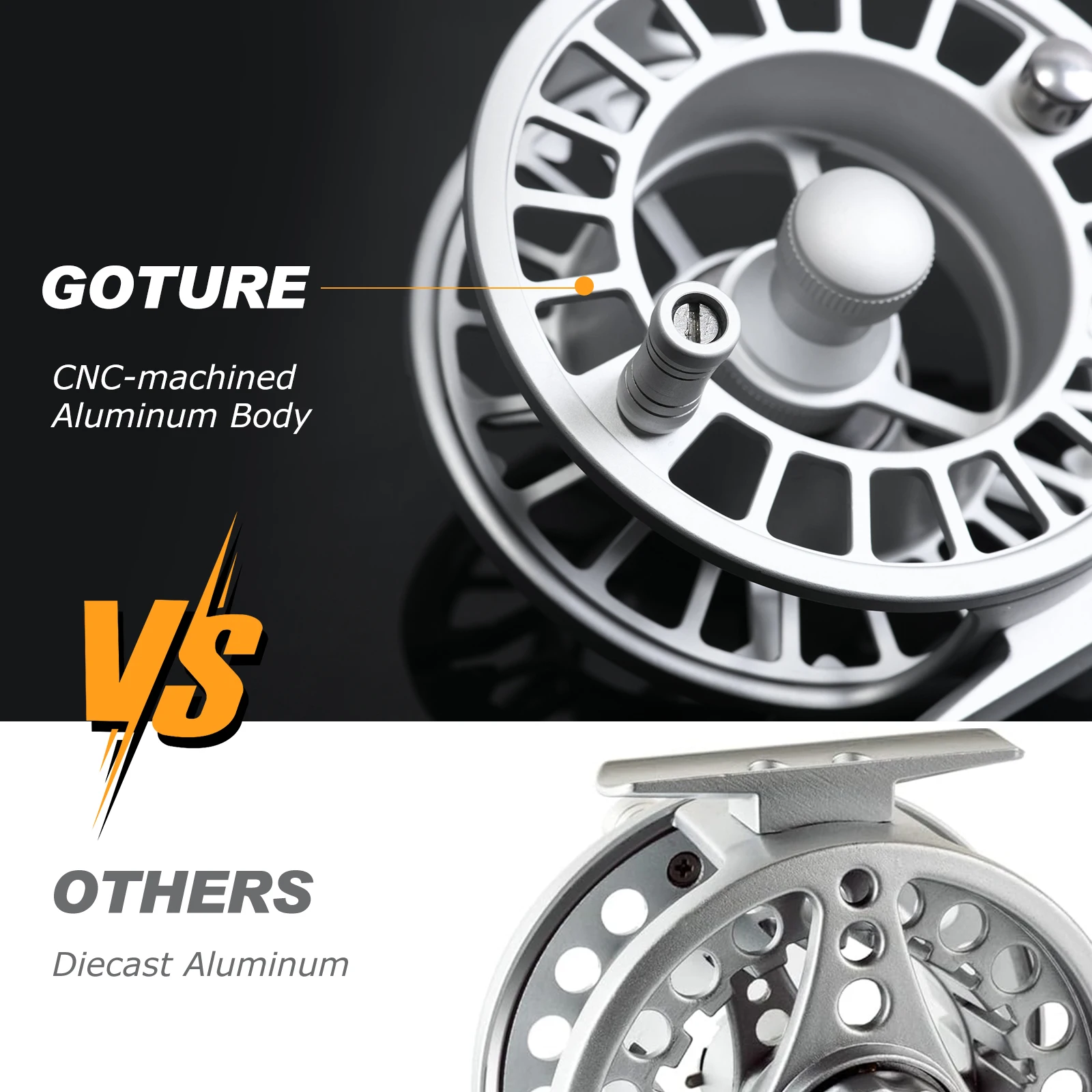 Carrete de pesca con mosca Goture 3/4 5/6 7/8 9/10WT, relación de velocidad 2 + 1 BB, carrete de pesca con cuerpo de aleación de aluminio mecanizado CNC