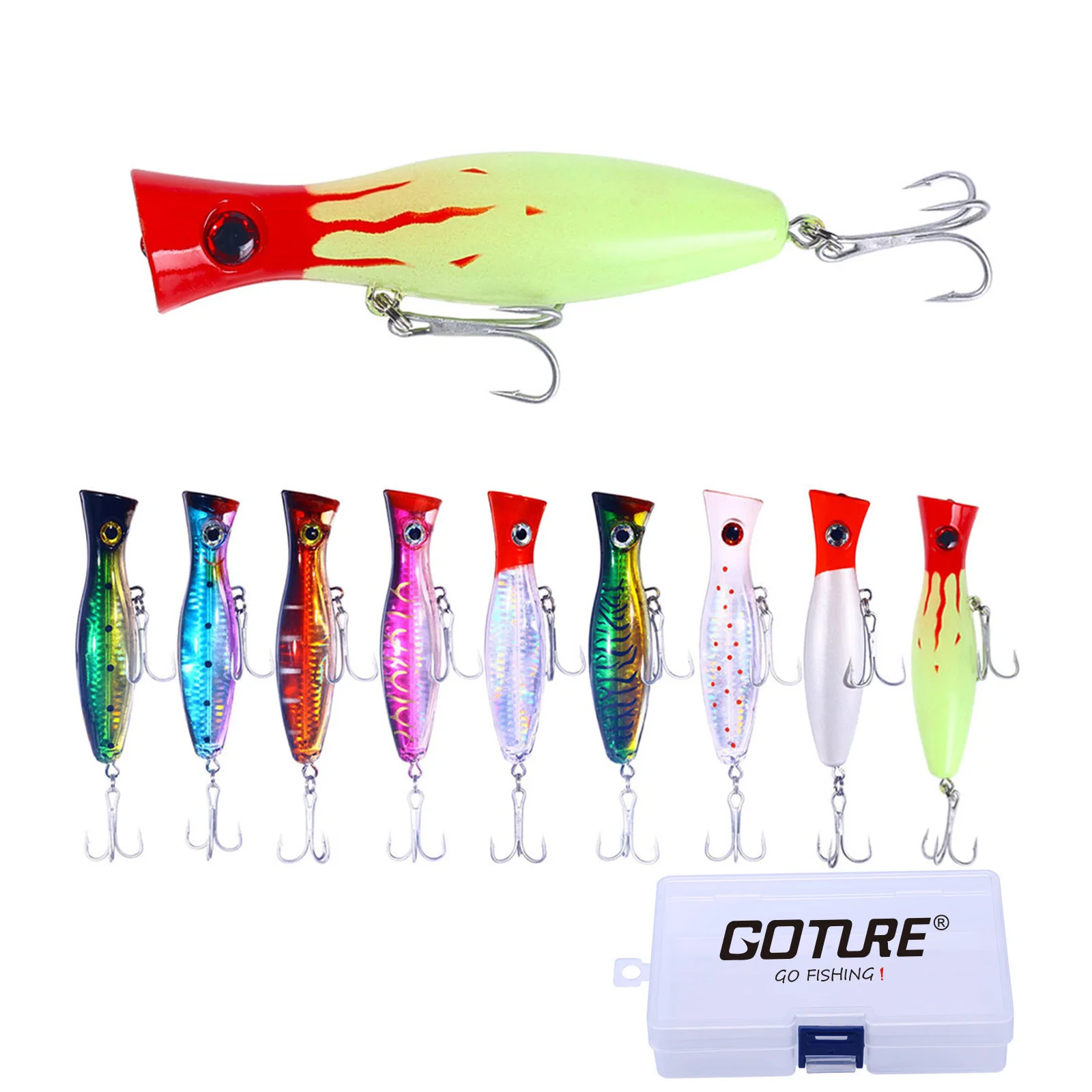 Goture 3 unids/caja Popper Señuelos de Pesca Wobblers 13cm 43g Topwater Crankbait cebo duro de plástico Artificial aparejos de pesca de Lucio