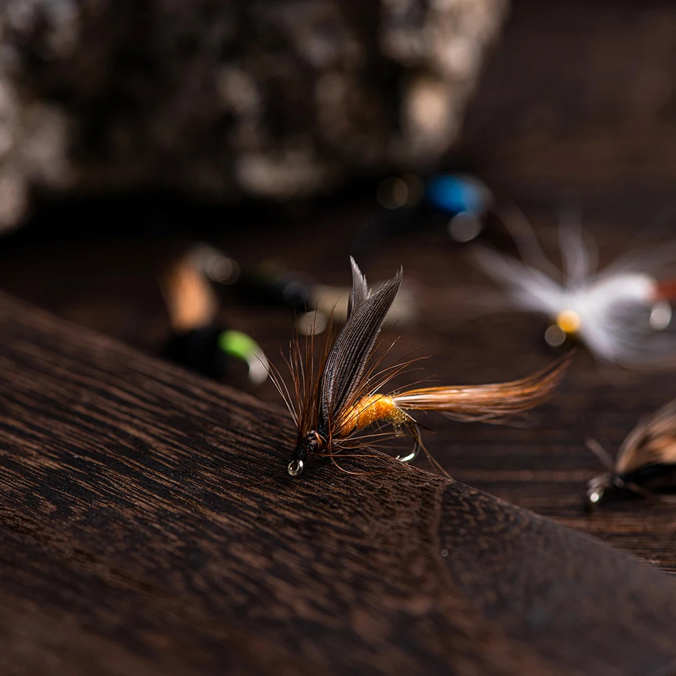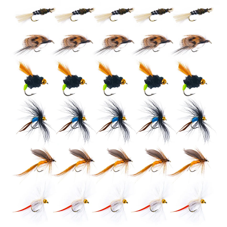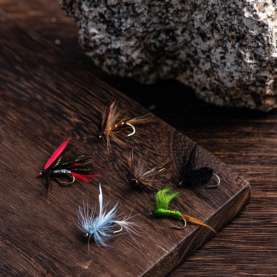 Goture 30 unids/lote señuelo de pesca con mosca moscas secas húmedas cebo de insectos artificiales hecho a mano gancho de acero rico en carbono para pesca de trucha