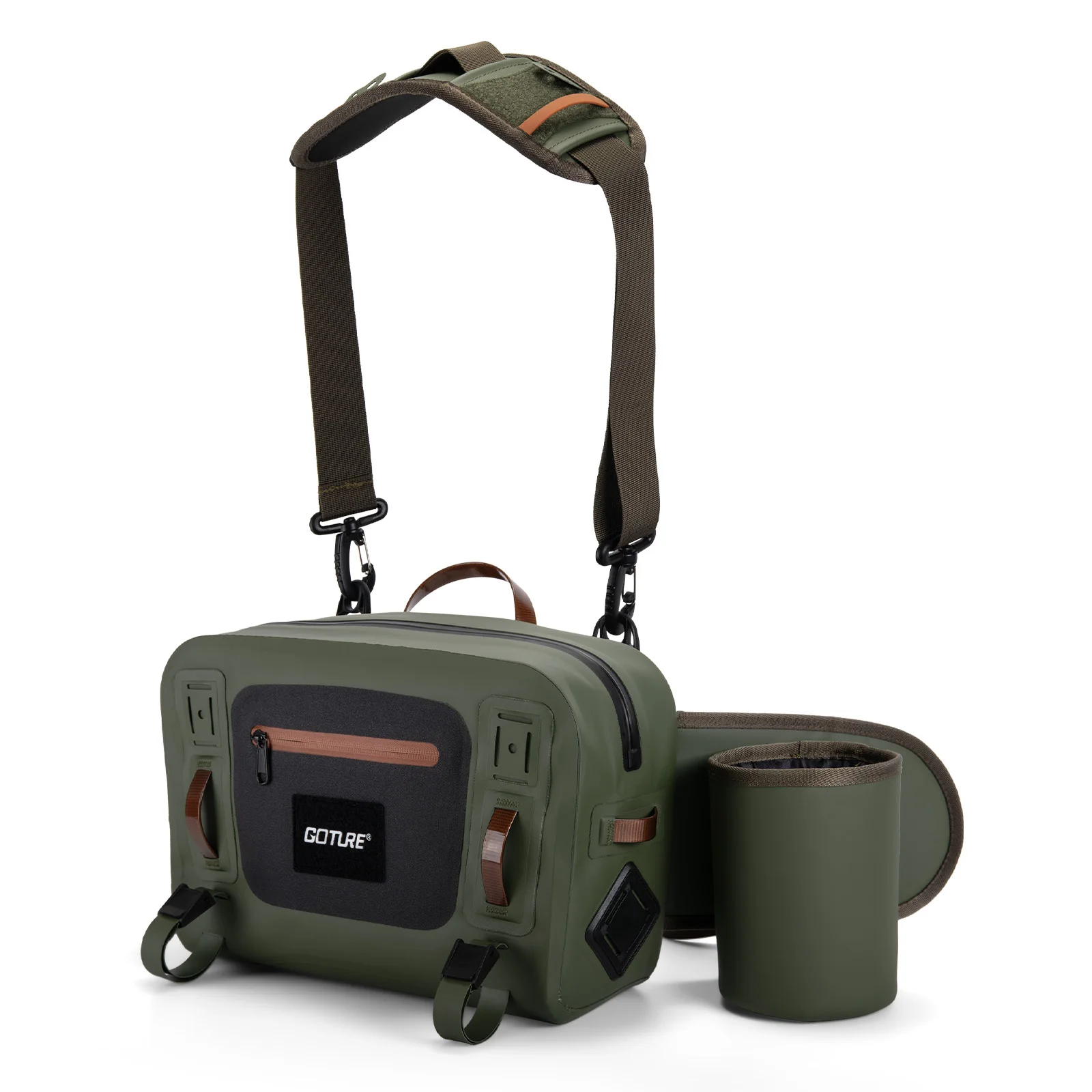 Goture 34,5x23x12,5 cm ultraligero impermeable pesca con mosca riñonera aparejos de pesca caña red de mano herramienta de almacenamiento bolsa de accesorios