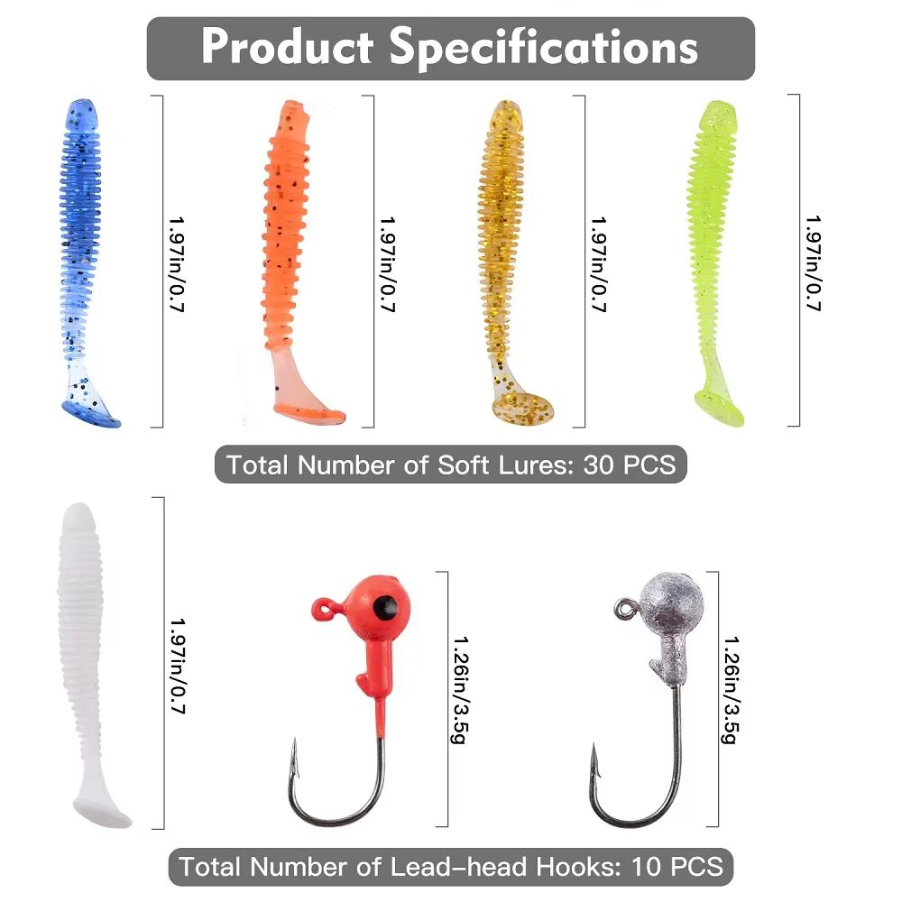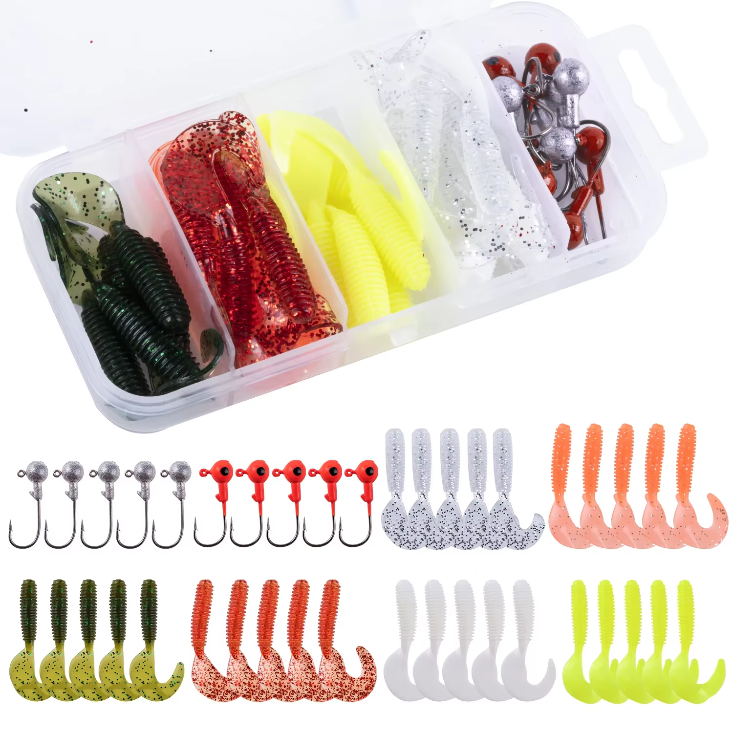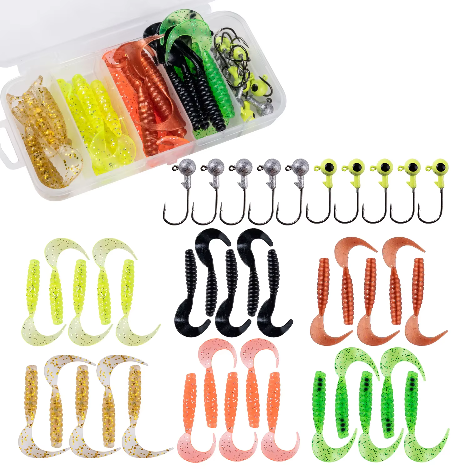 Goture 40 unids/lote Kit de señuelo suave señuelo de Pesca suave 5cm 0,7g anzuelo con cabeza de anzuelo 3,2 cm 3,5g anzuelos de Pesca con caja de aparejos de Pesca