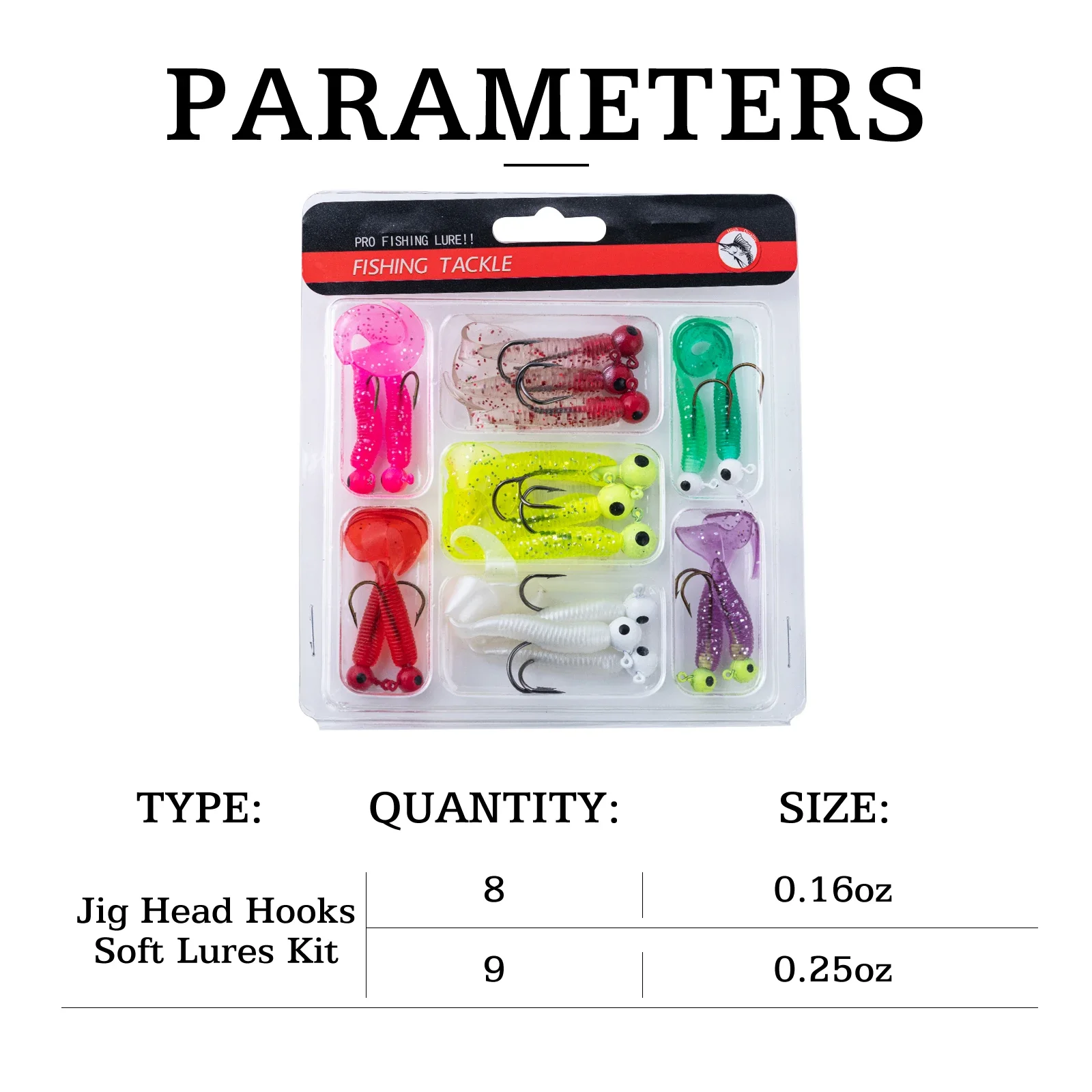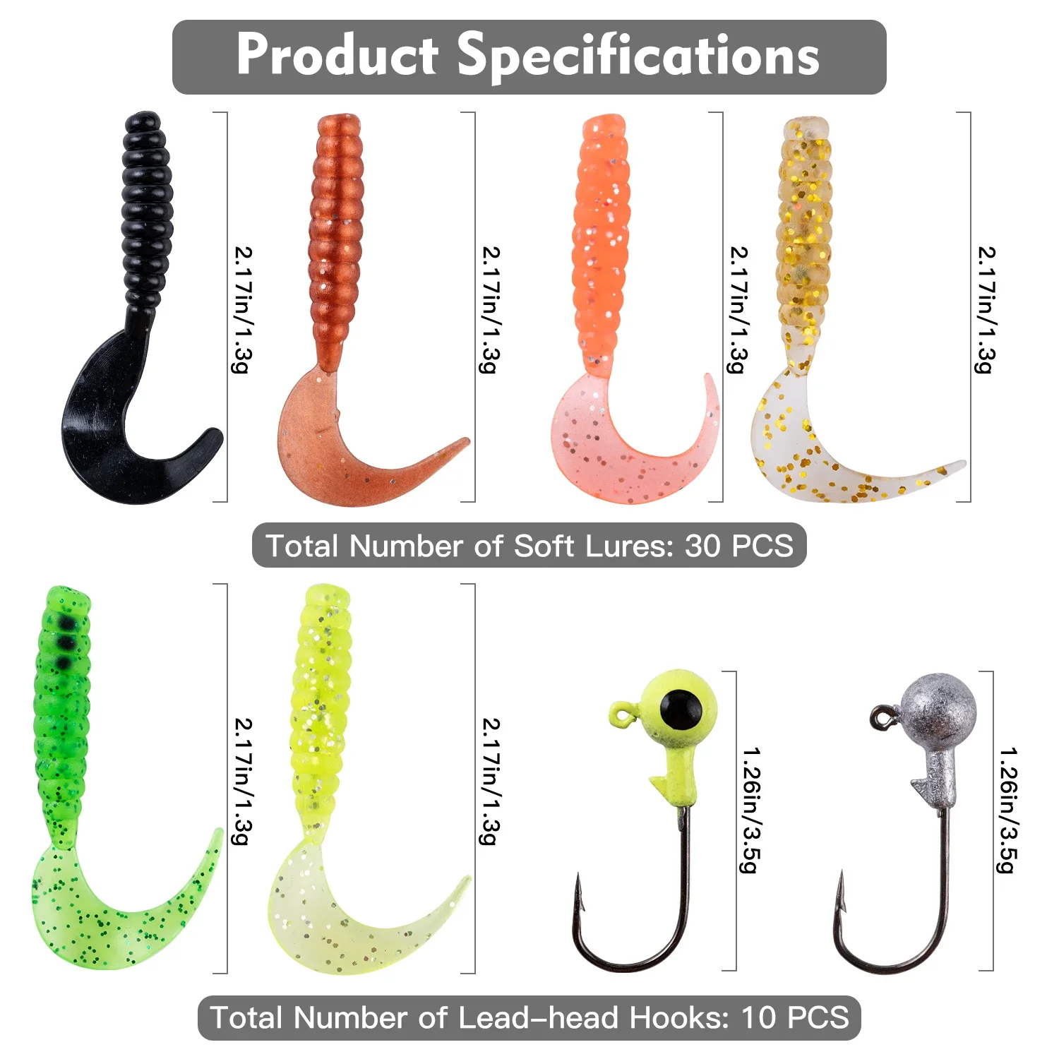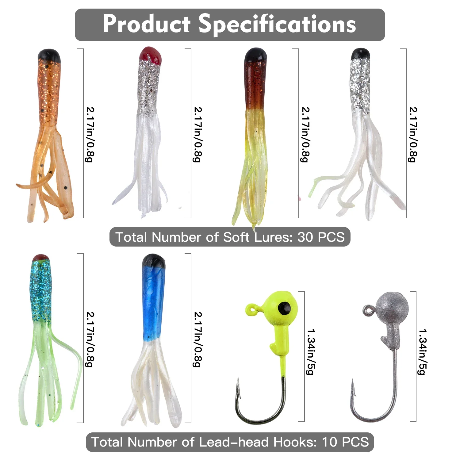 Goture 40 unids/lote Kit de señuelo suave señuelo de Pesca suave 5cm 0,7g anzuelo con cabeza de anzuelo 3,2 cm 3,5g anzuelos de Pesca con caja de aparejos de Pesca