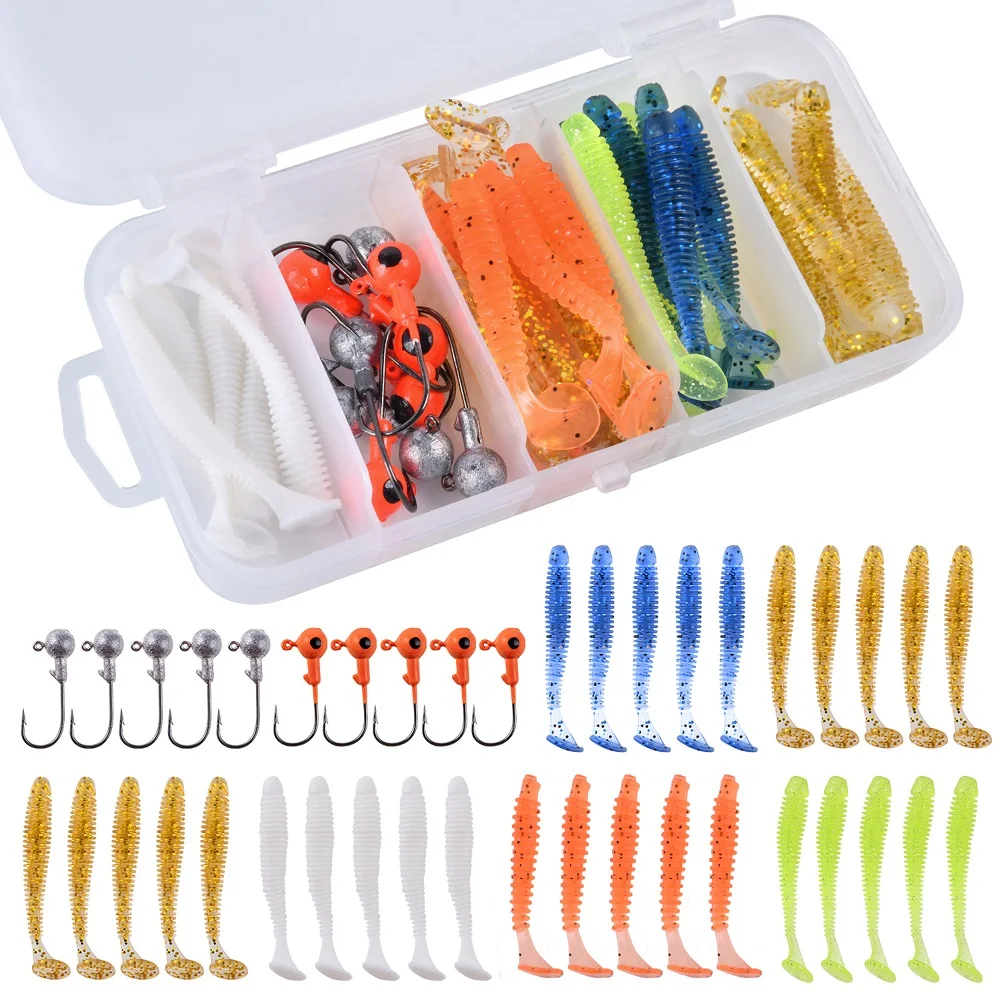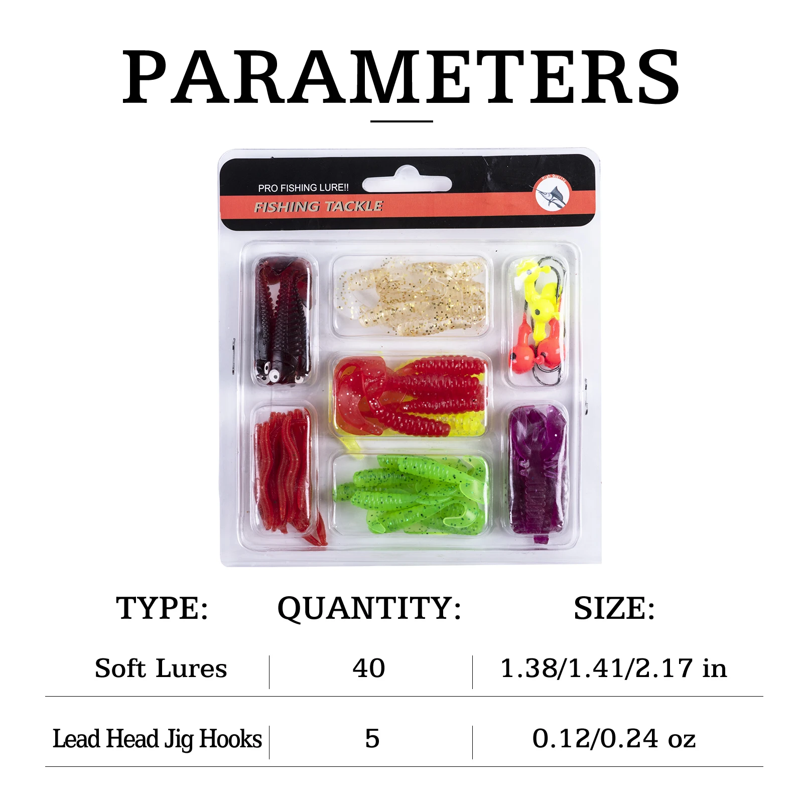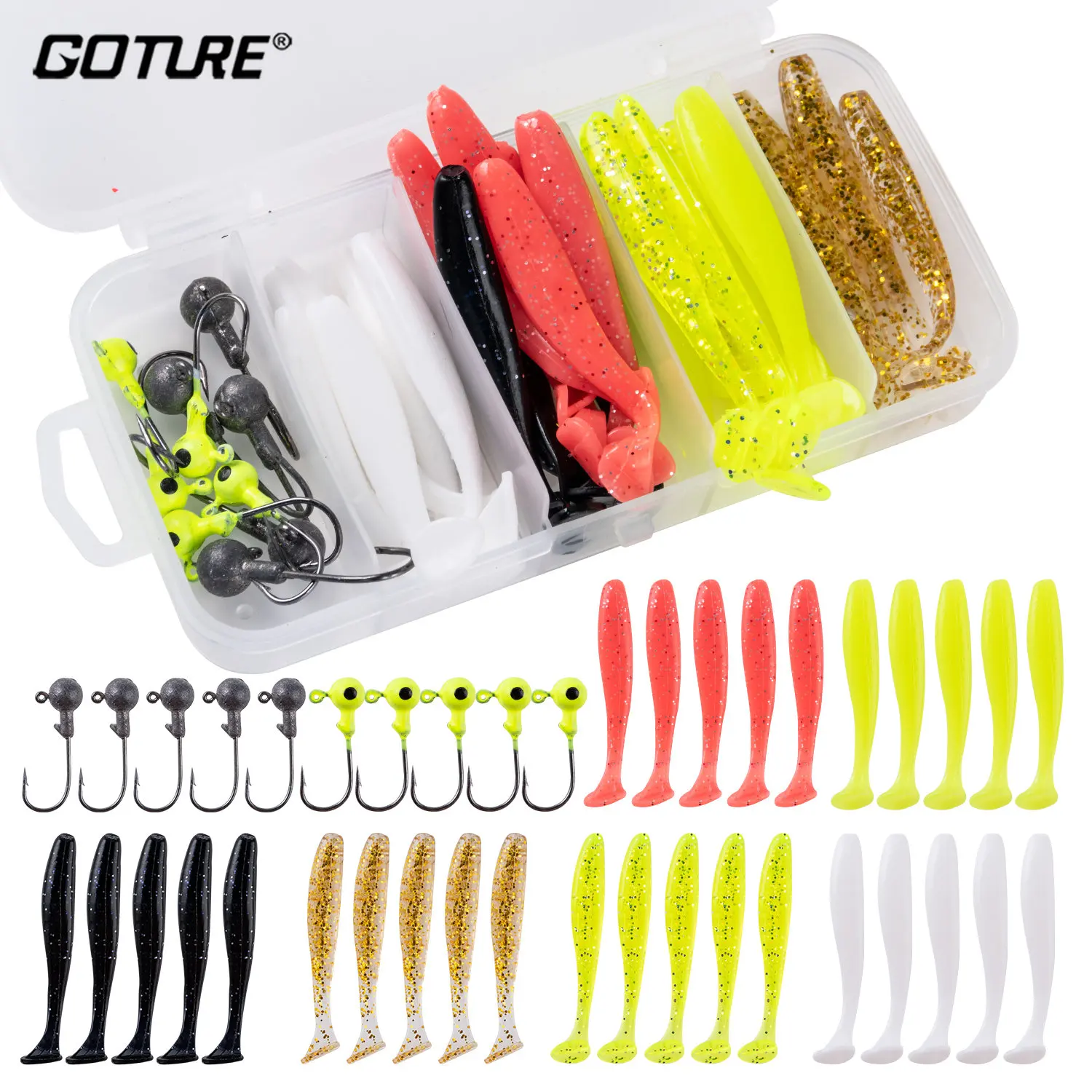 Goture 40 unids/lote Kit de señuelo suave señuelo de Pesca suave 5cm 0,7g anzuelo con cabeza de anzuelo 3,2 cm 3,5g anzuelos de Pesca con caja de aparejos de Pesca