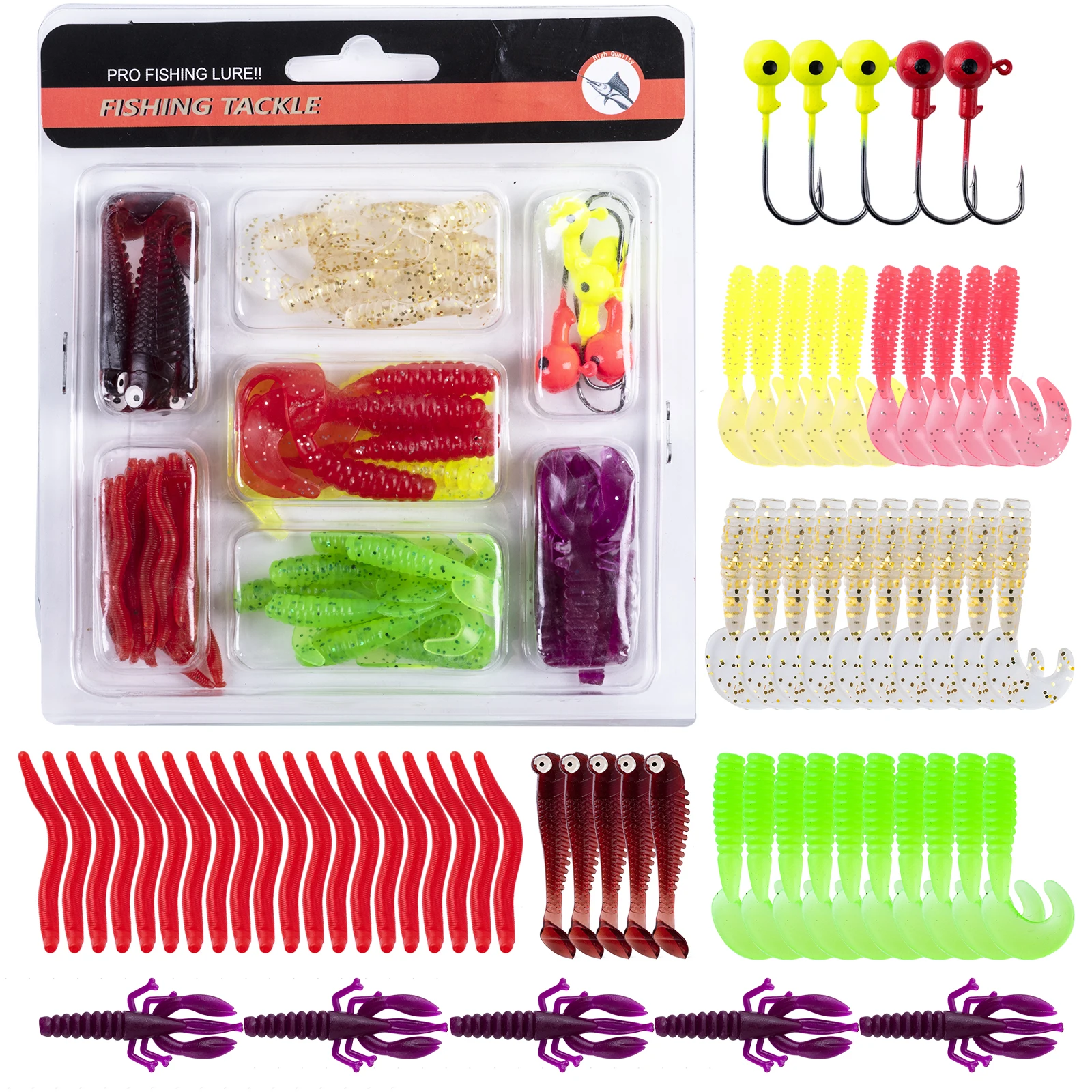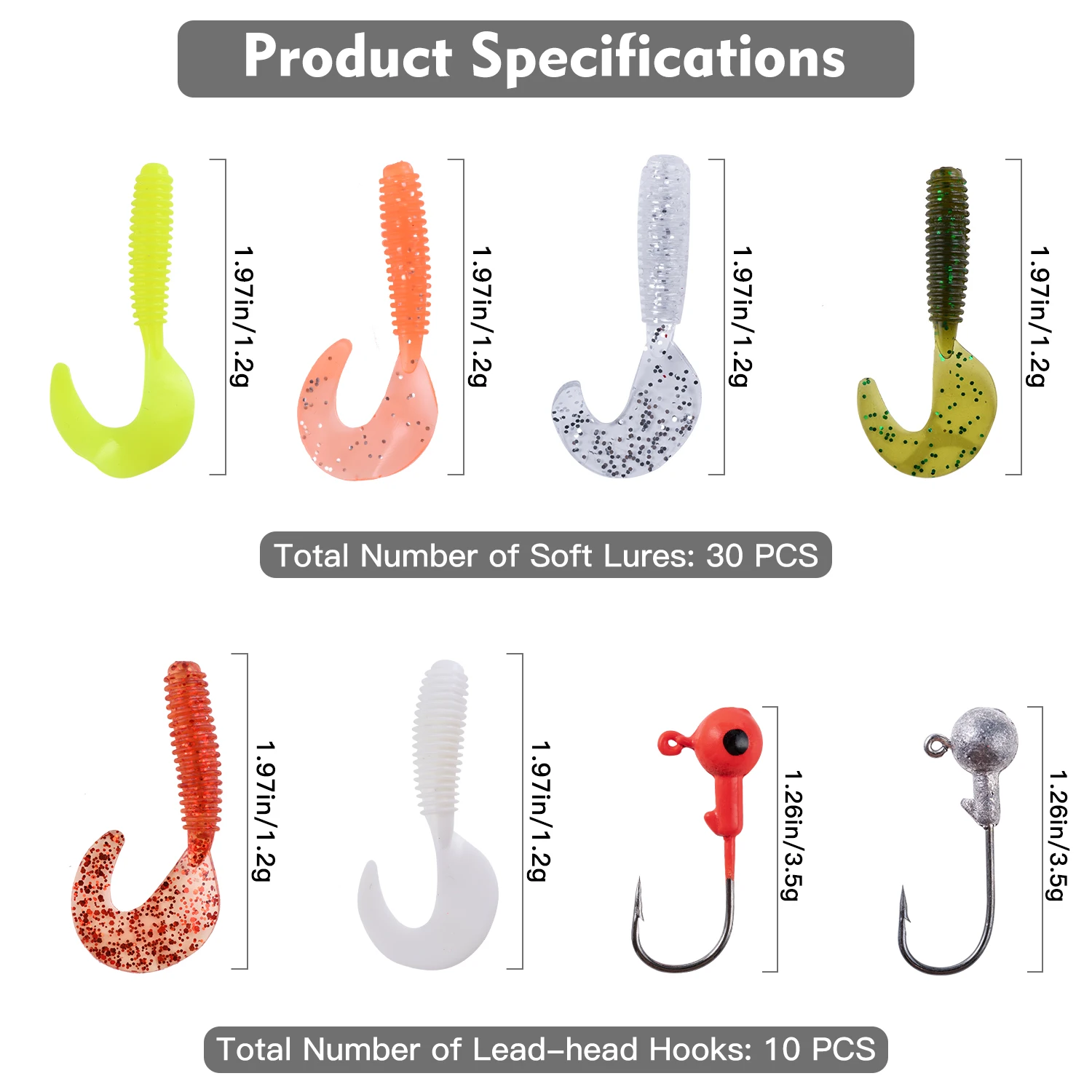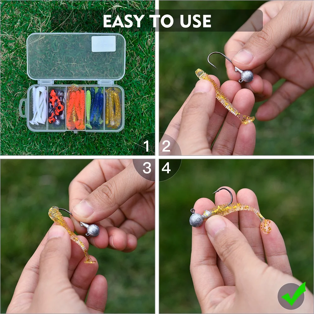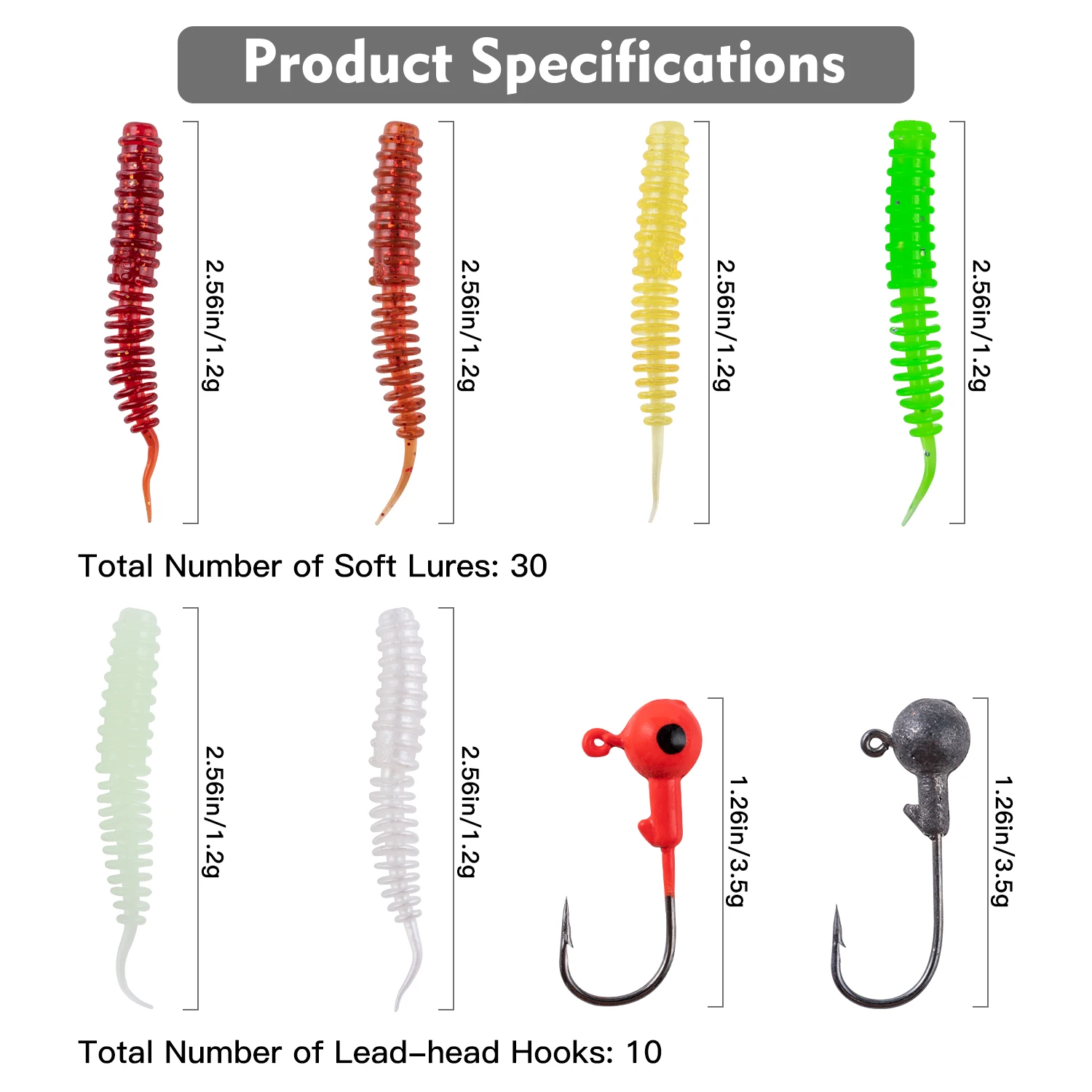 Goture 40 unids/lote Kit de señuelo suave señuelo de Pesca suave 5cm 0,7g anzuelo con cabeza de anzuelo 3,2 cm 3,5g anzuelos de Pesca con caja de aparejos de Pesca