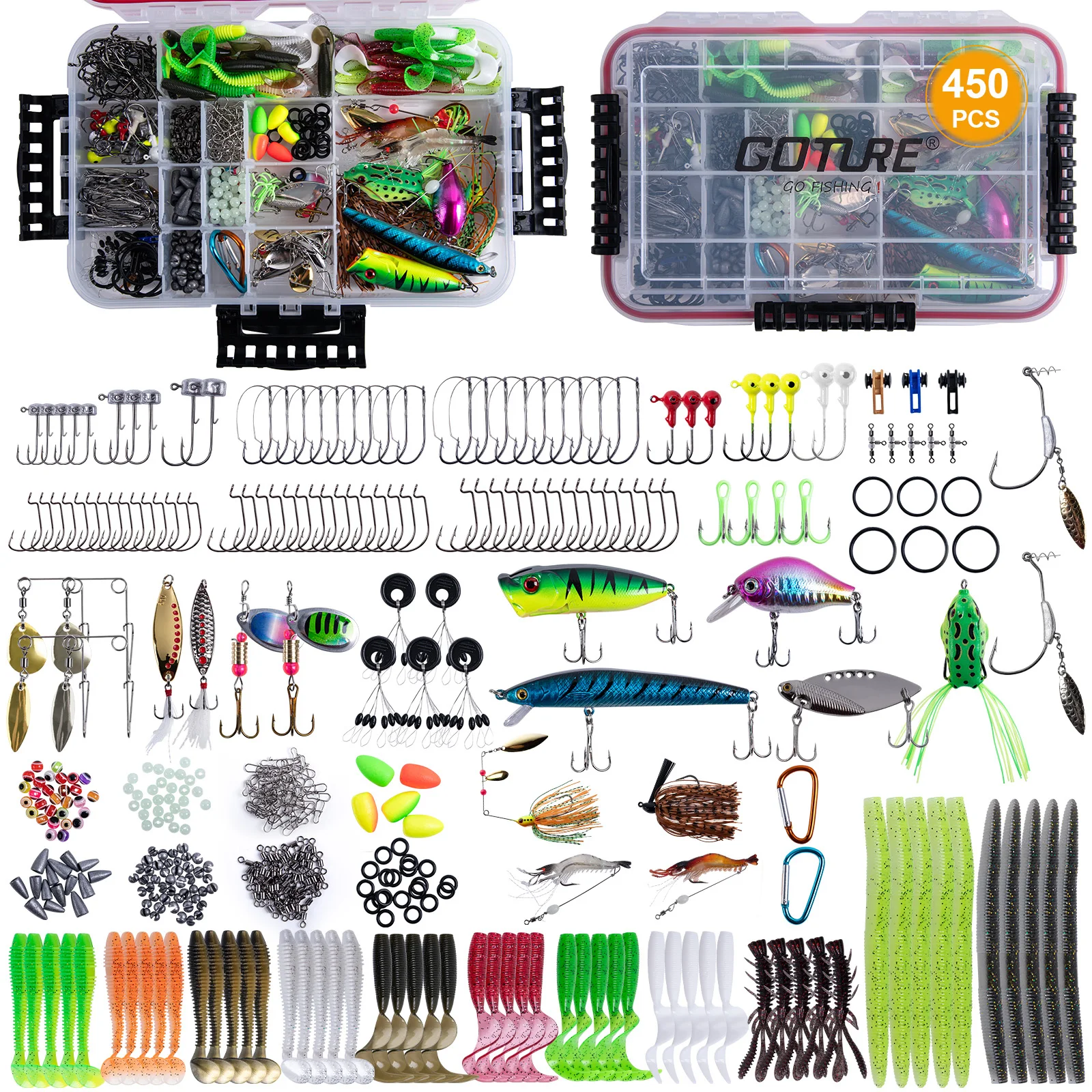 Goture 450 Uds Kit de Señuelos de Pesca Kit de Señuelos VIB mixtos Minnow Mini manivela Wobble cebo cuchara para lubina accesorios de manivela con caja