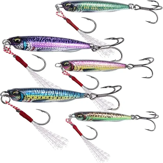 Goture 5pcs/Set Metal Jig Lure 20g 25g 30g Spinner Sinking 3D Eye Colo Jigging Bait with Hooks for Sea Bass Sea Fishing Lure
