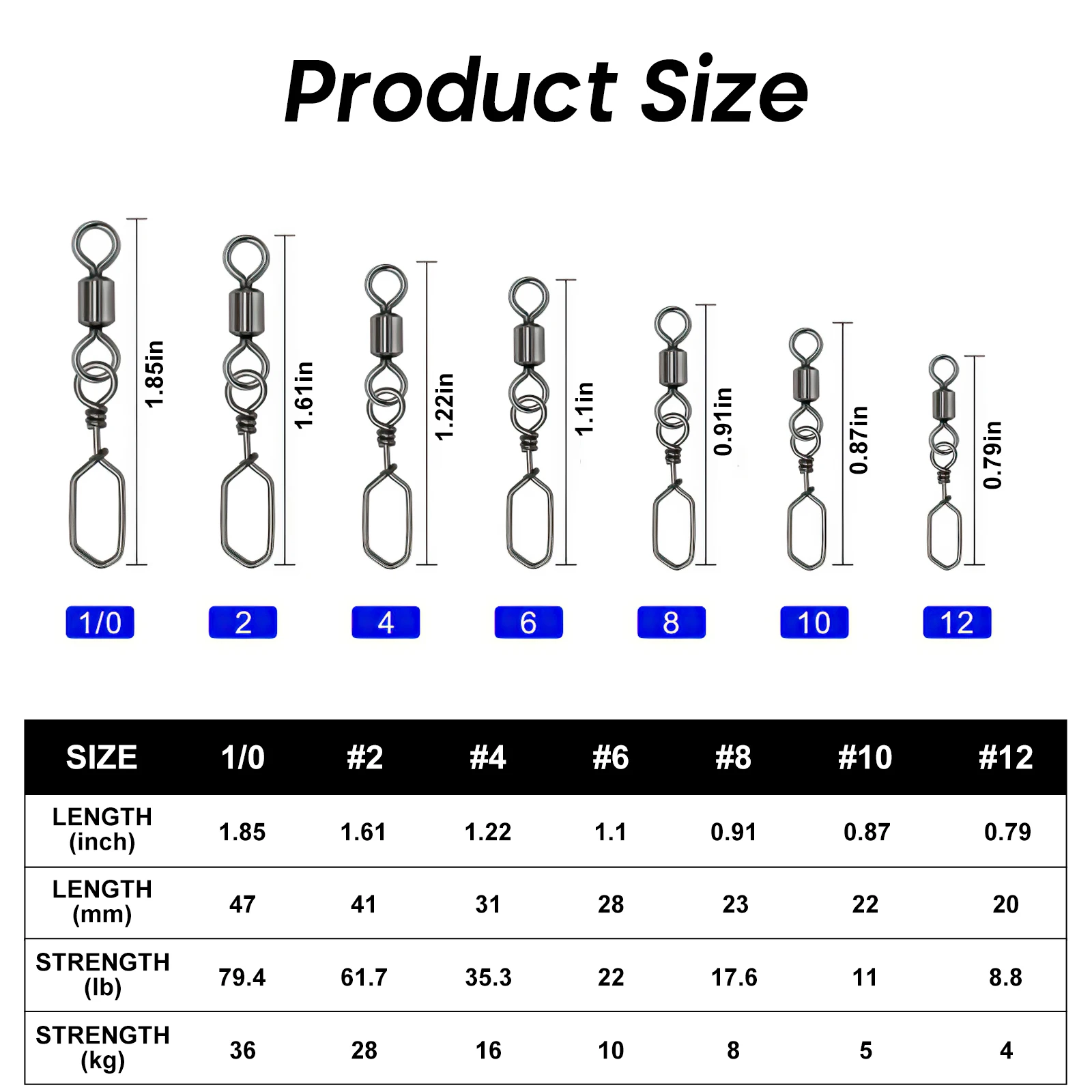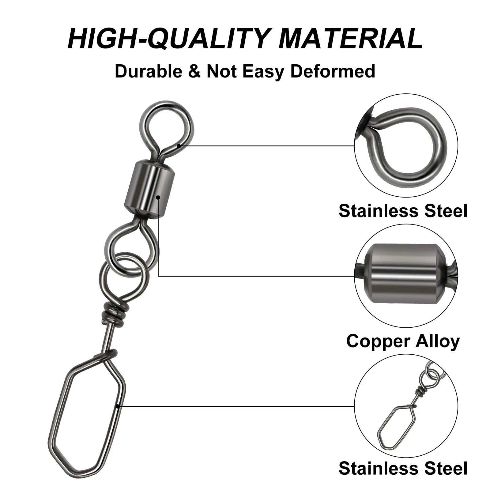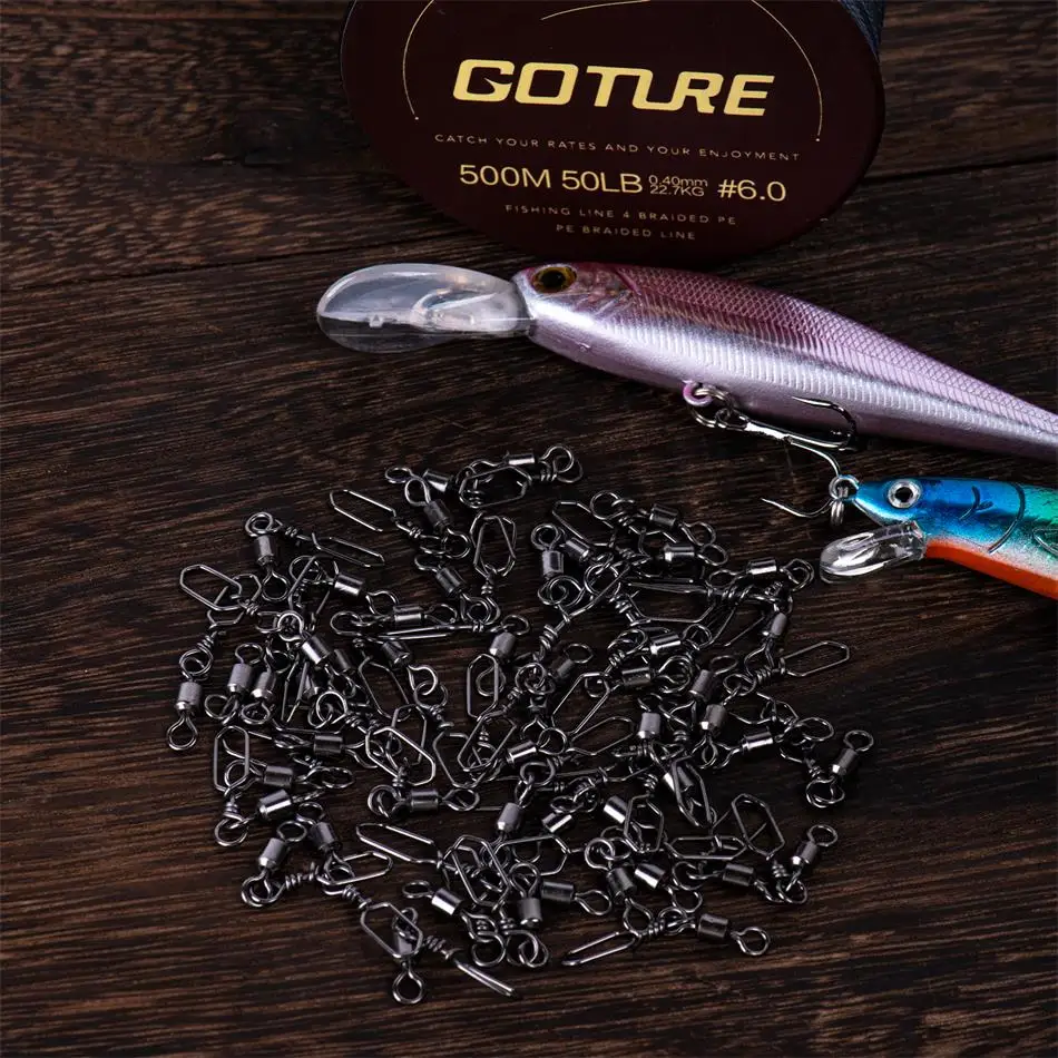 Goture 50 piezas/lote de eslabones giratorios de pesca de alta velocidad, doble rodamiento, rotación Flexible, accesorios de pesca giratorios de acero inoxidable
