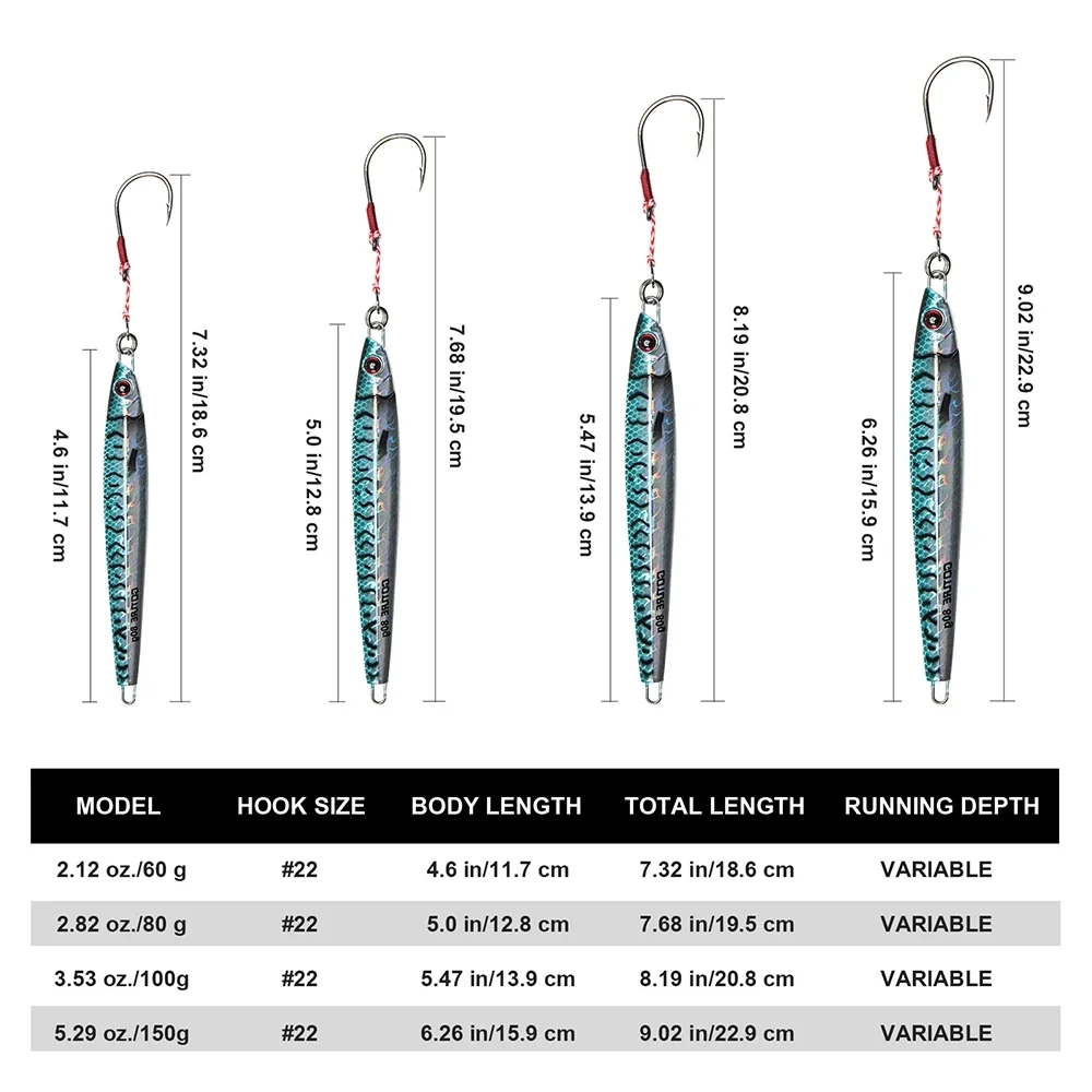 Goture Deep Sea luminosa plantilla de Metal pesca Jigbait 60g 80g 100g 150g cuchara cebos Jig señuelo lápiz aparejos de pesca de hundimiento rápido