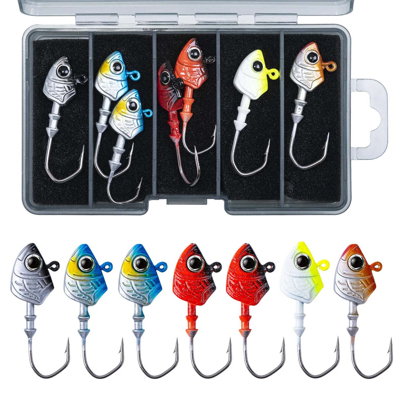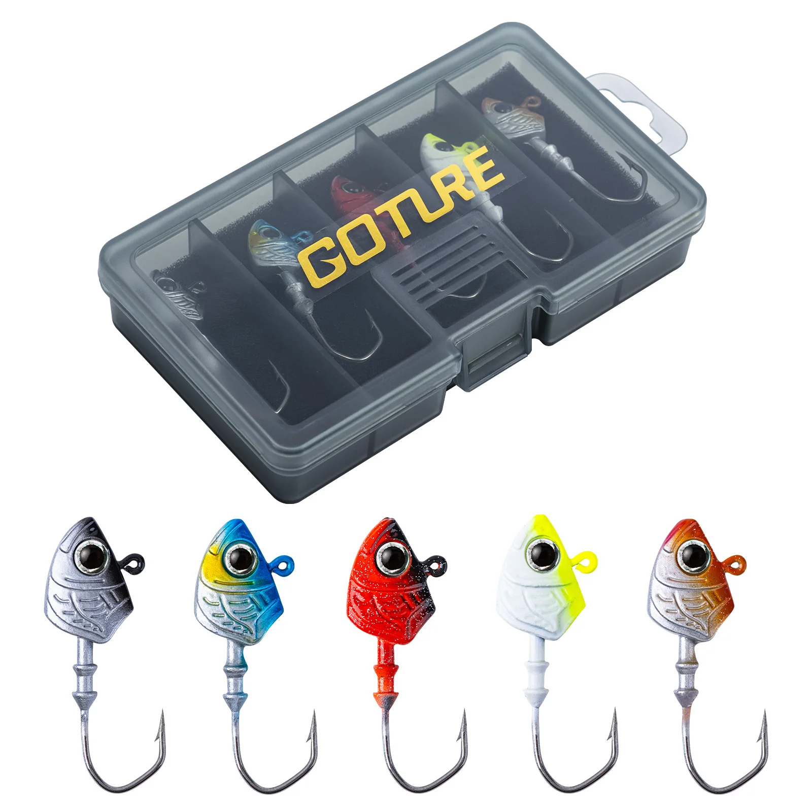 Goture 7g 10g 14g ojos 3D plantilla cabeza de pesca anzuelo de gusano señuelo de invierno aparejos de pesca lubina para señuelo suave anzuelo de púas