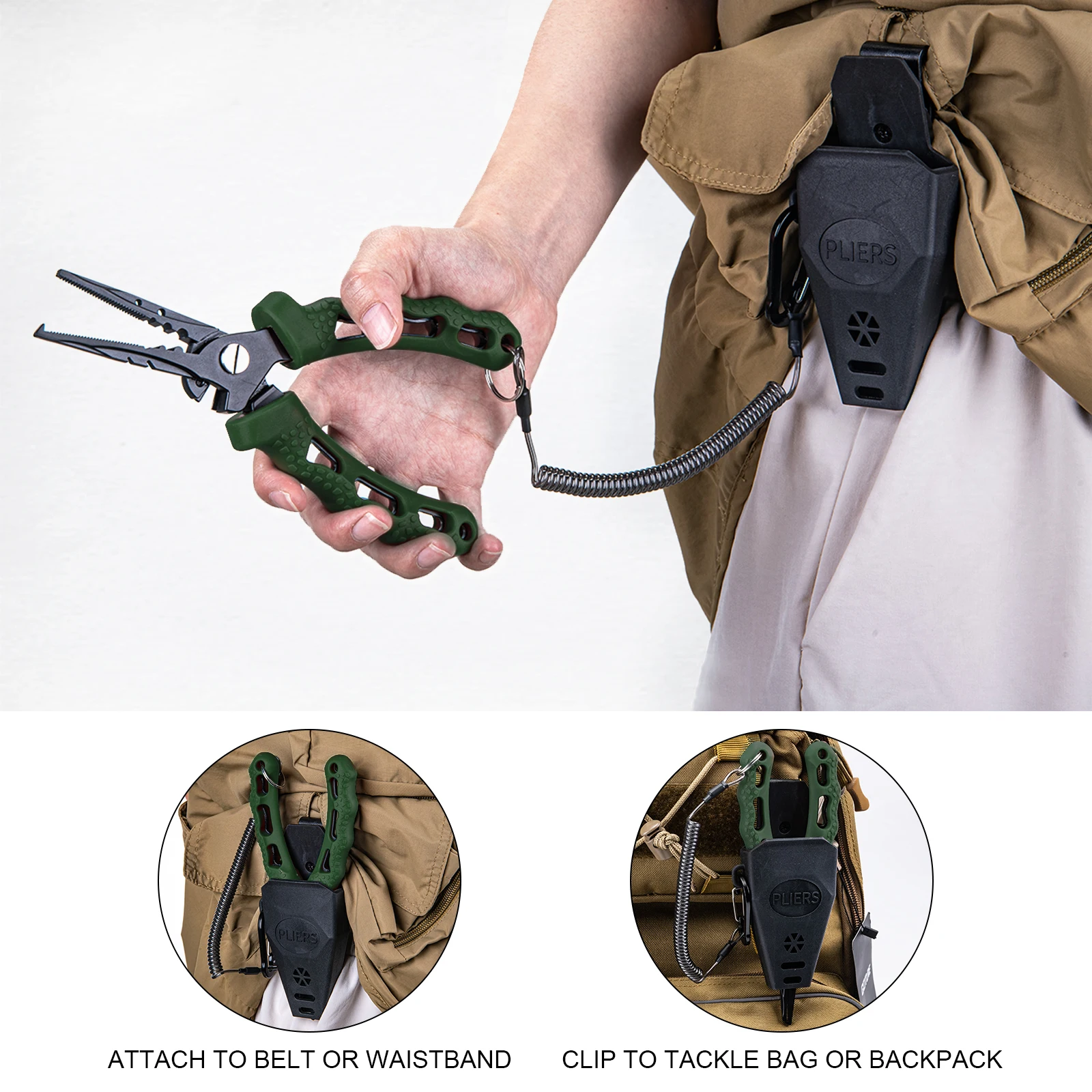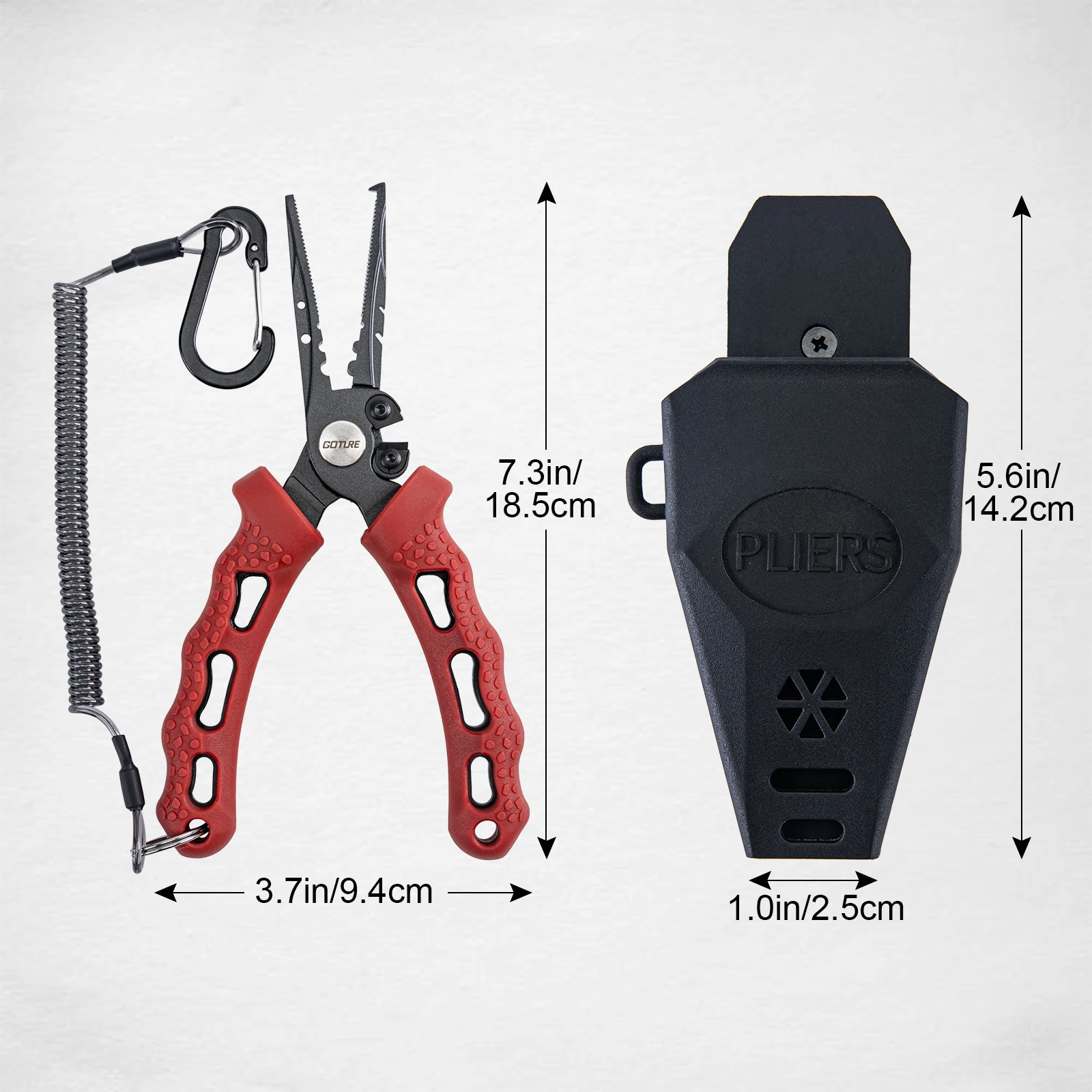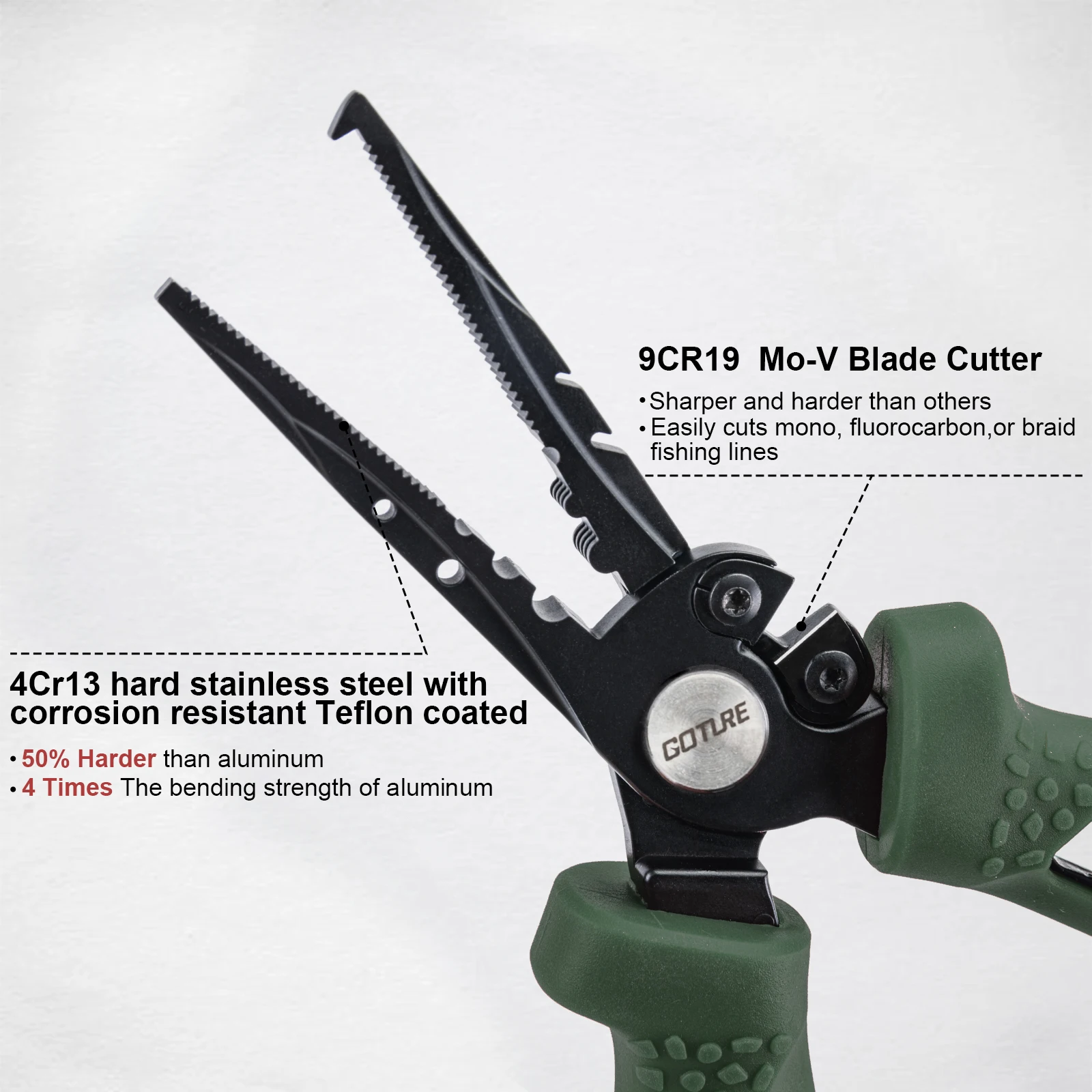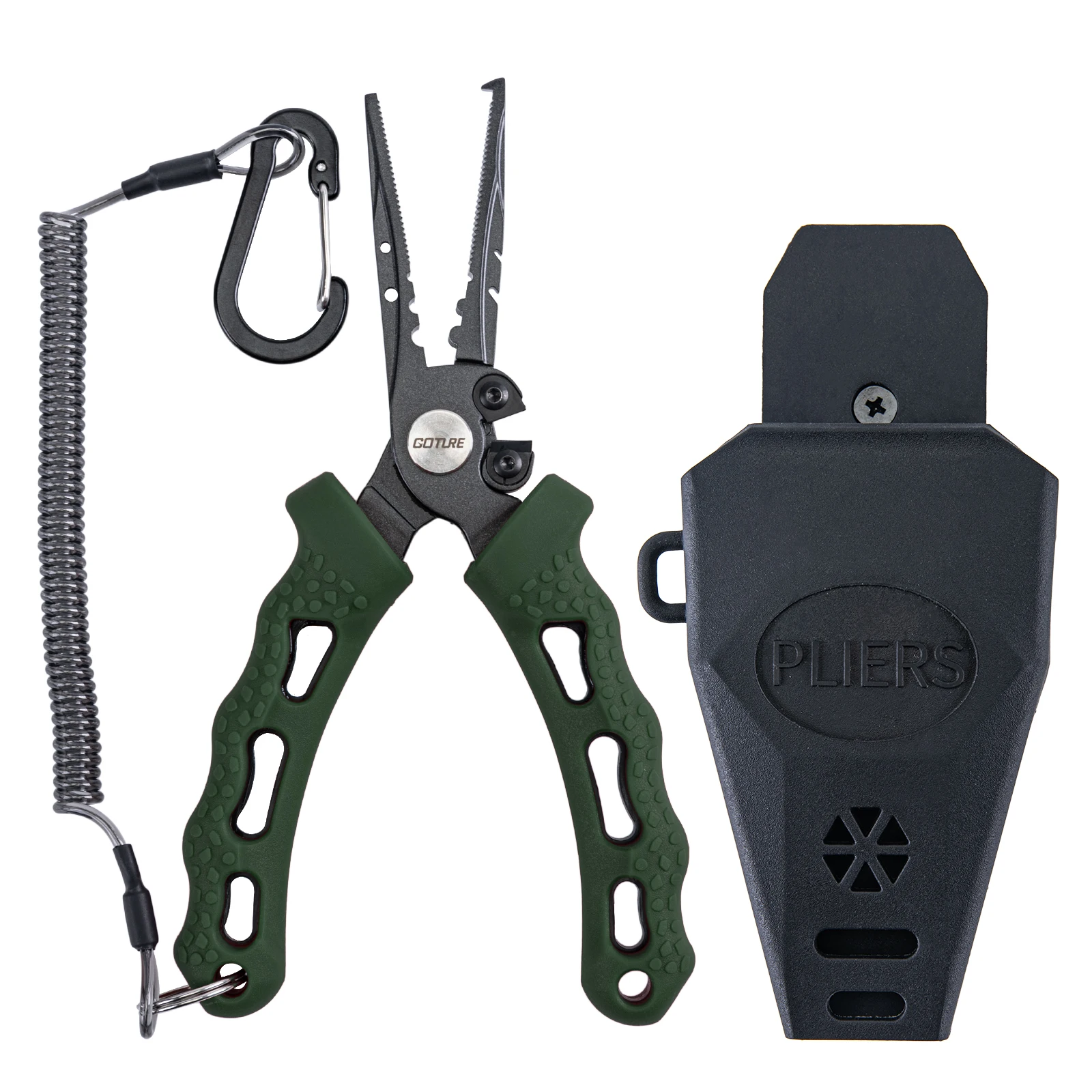 Goture-Alicates de pesca de 7 ", mango de goma antideslizante, multifunción como Alicates de anillo dividido, cortador de línea, removedor de anzuelos, funda crimpadora