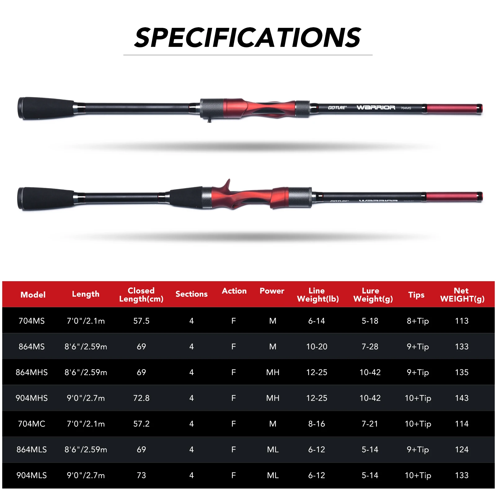 Goture Fuji guía anillo Spinning Casting señuelo cañas de pescar 2,1 m 2,59 M 2,7 m 24 + 30T carbono Baitcasting caña de viaje con bolsa de tubo