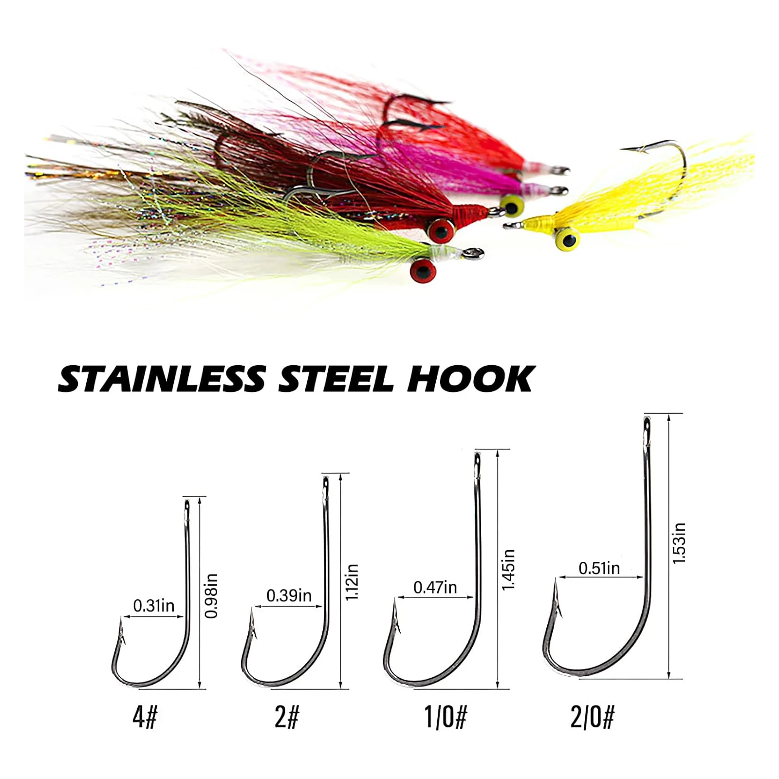 【Qué obtendrás 】Un Kit de pesca con mosca con 6 colores diferentes, un total de 4 tamaños para elegir, 4 #, 2 #, 1/0, 2/0. Puede ser adecuado para agua salada o agua dulce. Puede elegir según sus necesidades.