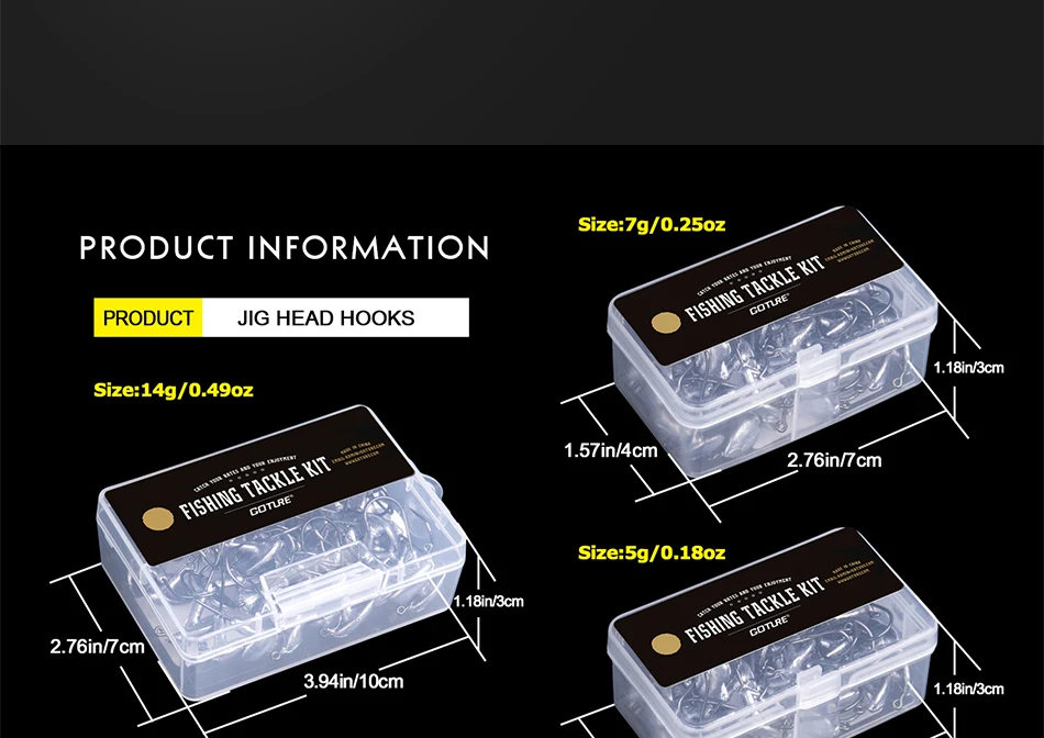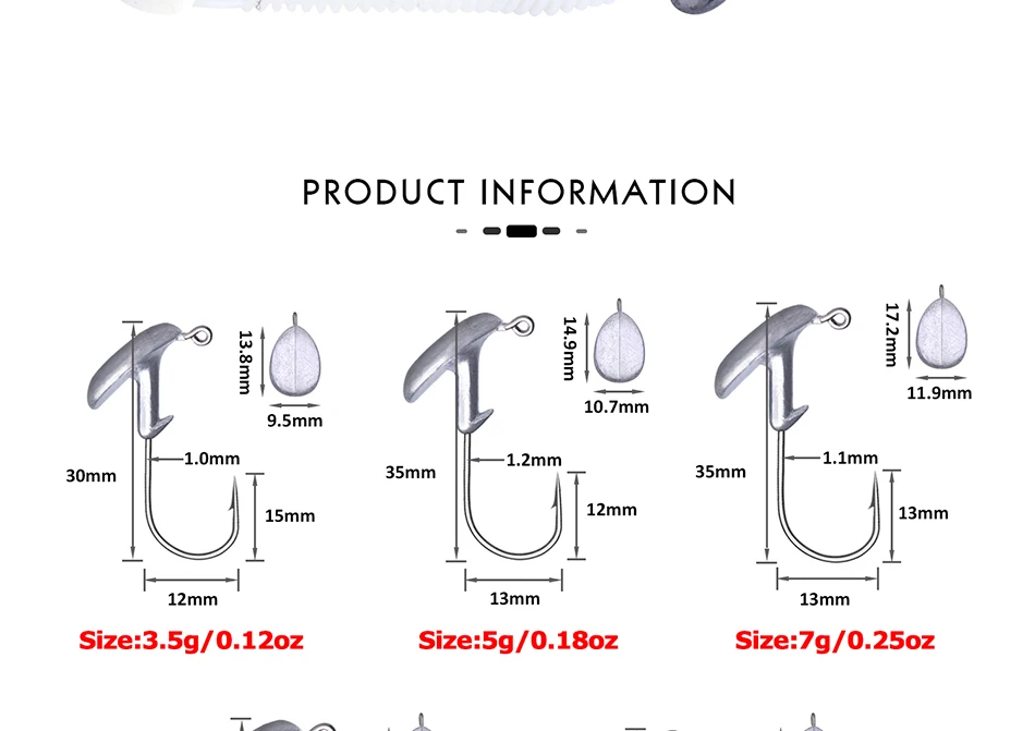 -- VARIOS TAMAÑOS OPCIONALES:Proporcionamos 3,5g, 5G, 7g, 10g y 14g, todos son los tamaños comunes en la pesca práctica;