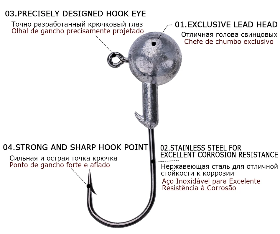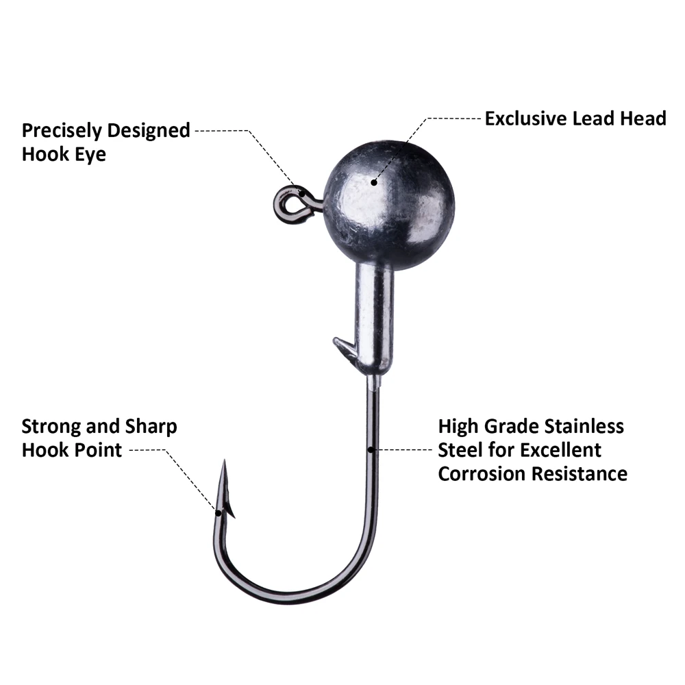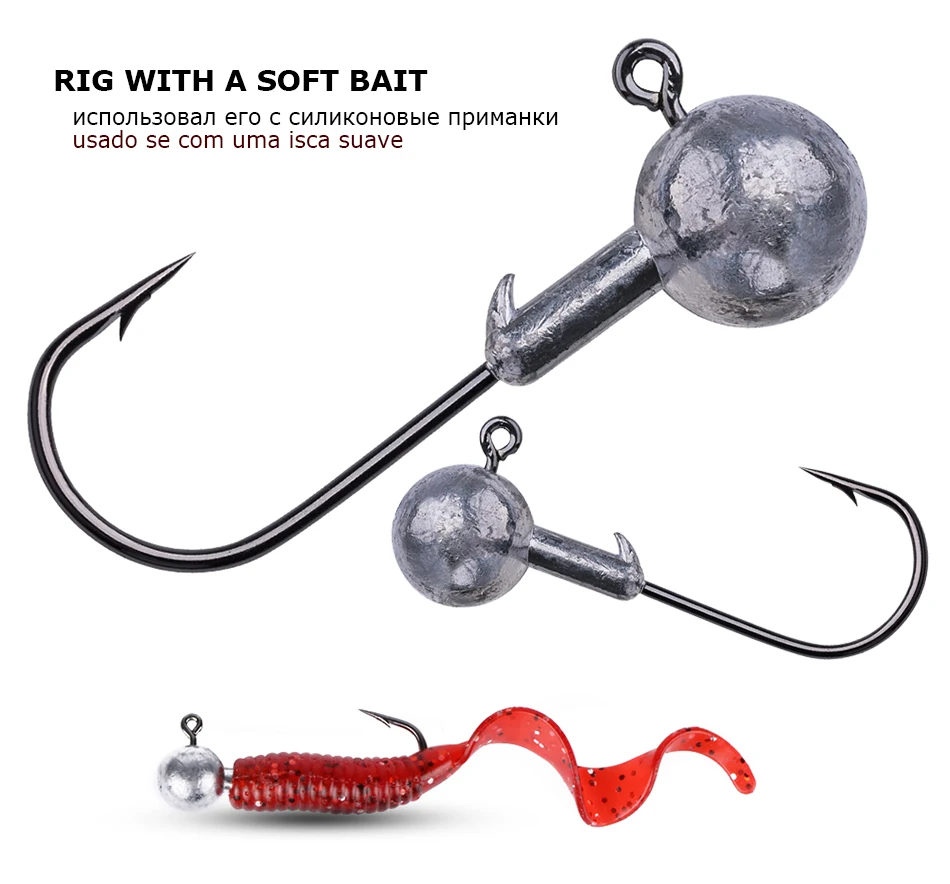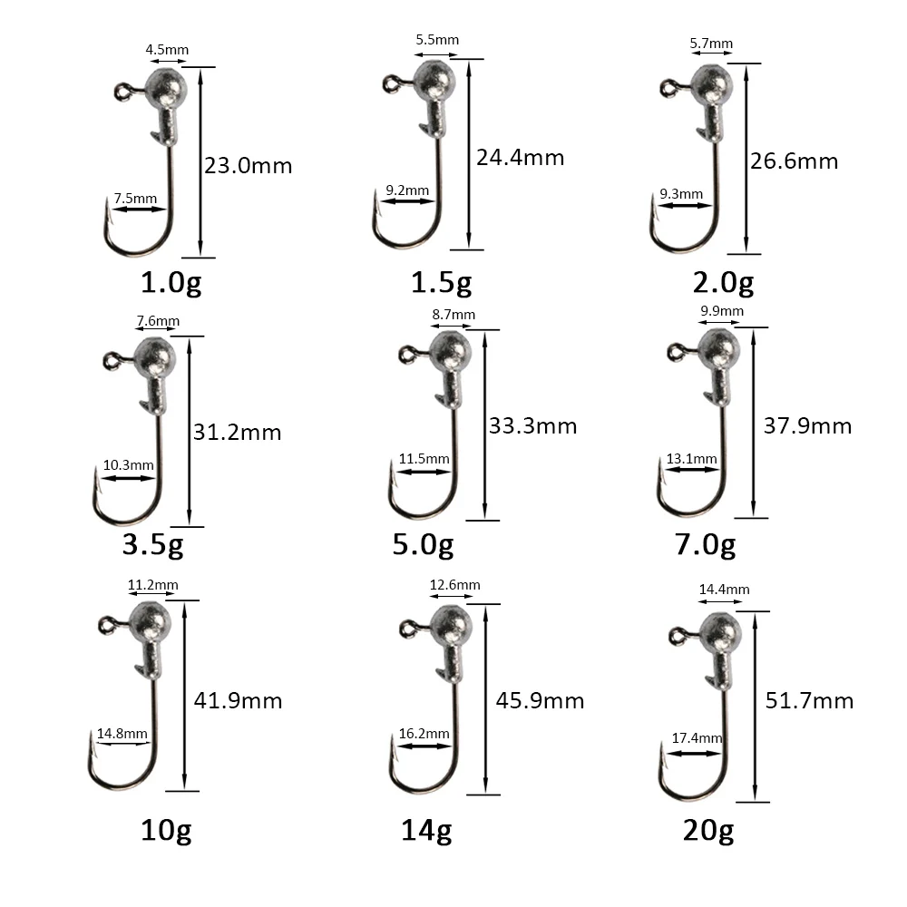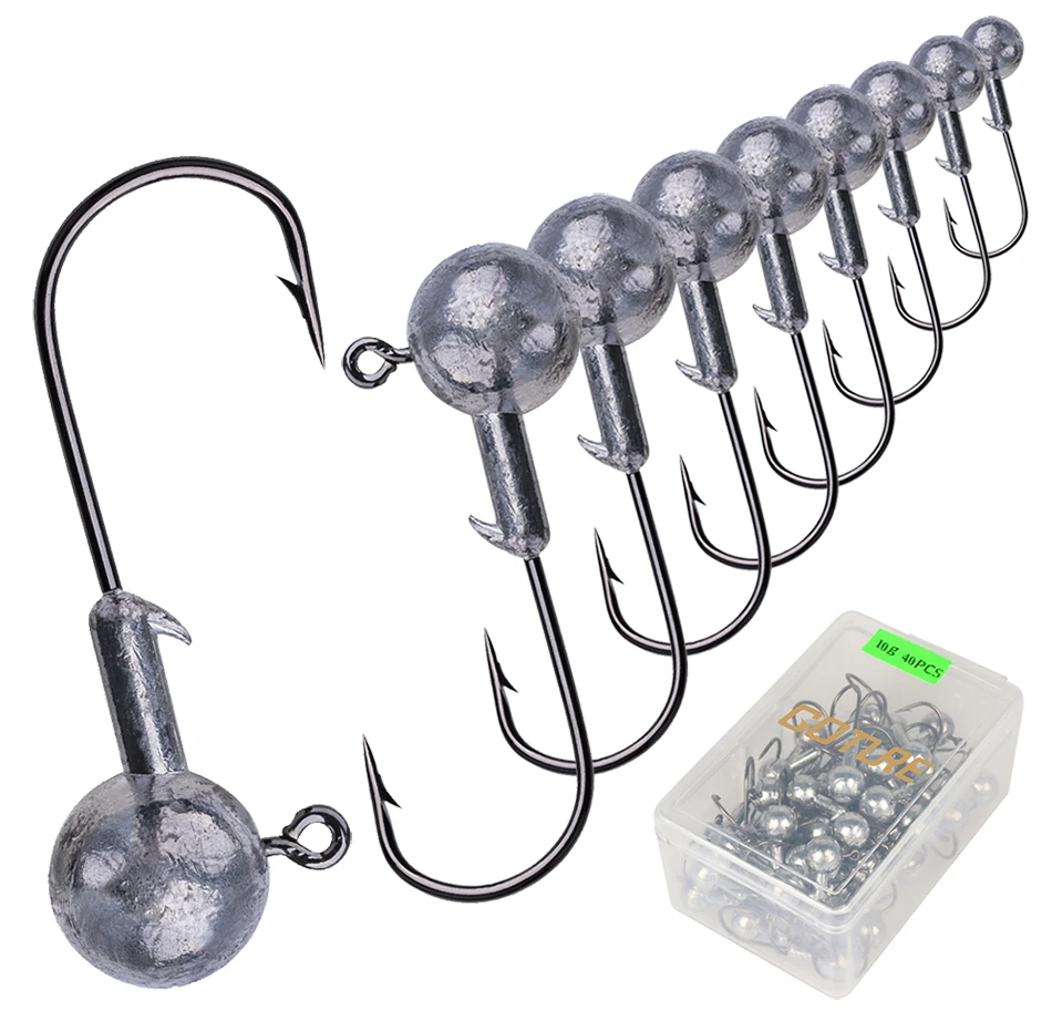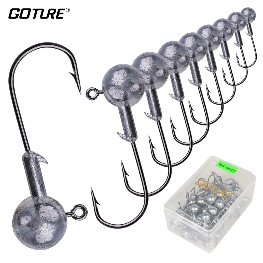 Goture 20/50 Uds anzuelo de pesca con cabeza de plomo 1g-20g anzuelos para señuelos blandos anzuelos de acero al carbono cabeza de plantilla para pesca de lubina de carpa