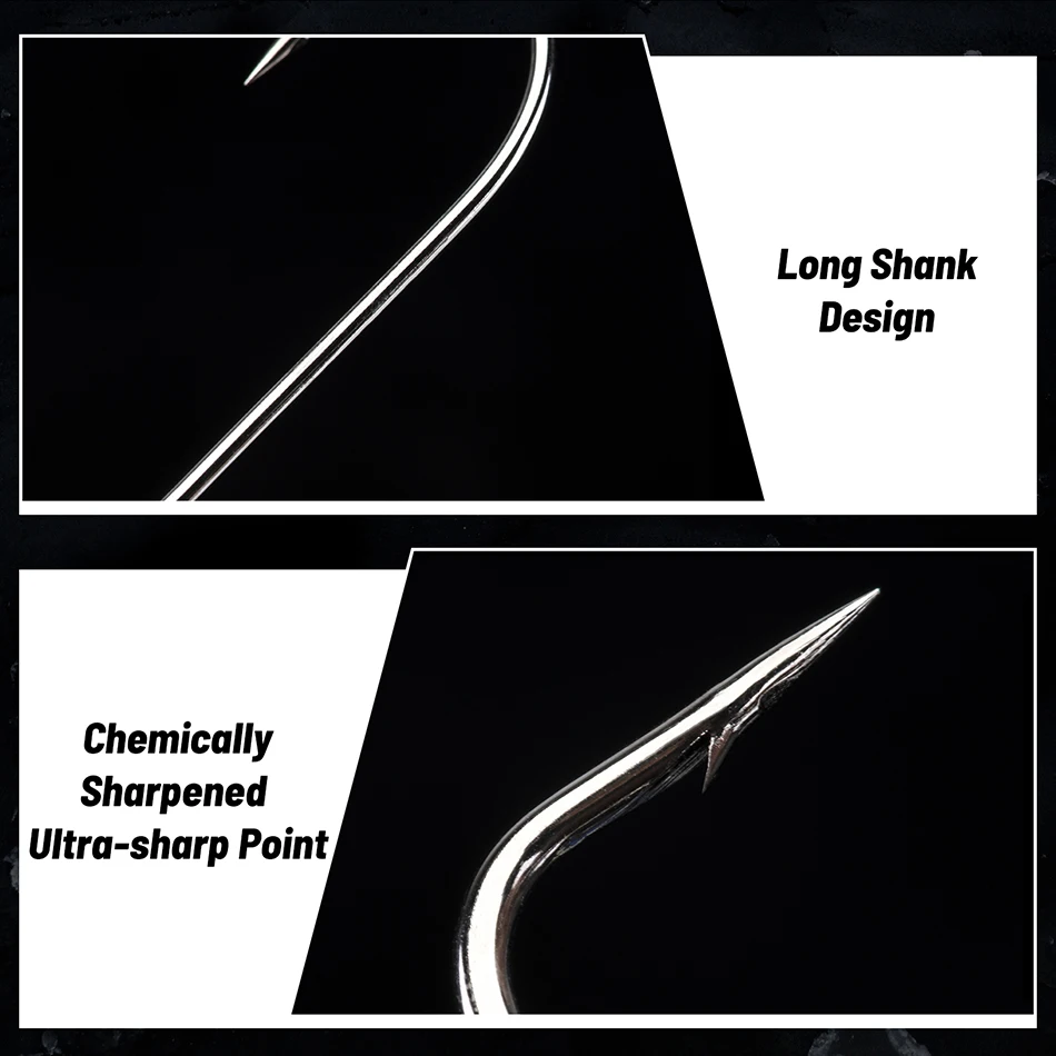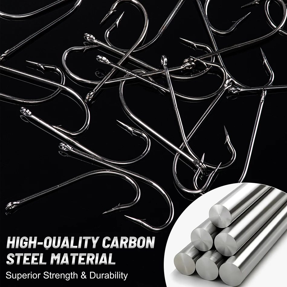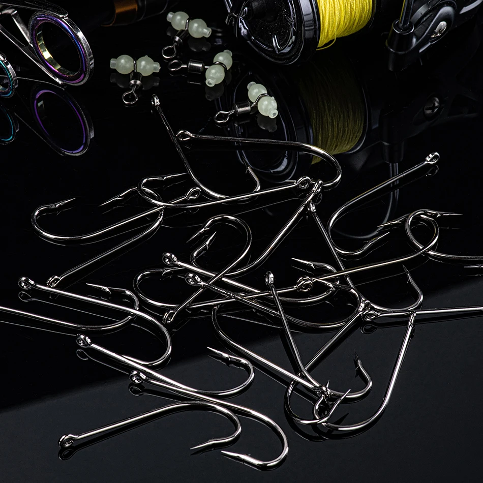 Goture 50 unids/lote anzuelos de pesca de vástago largo anzuelos de acero de alto carbono 1/0 2/0 3/0 4/0 5/0 6/0 para pesca marina pesca de agua dulce
