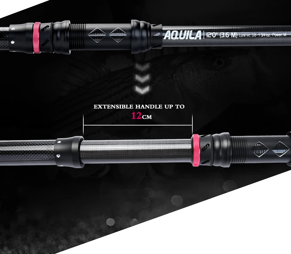 1. La caña de pescar está hecha deAsiento de rueda hueco de aleación de aluminio, Ligero y duradero.
