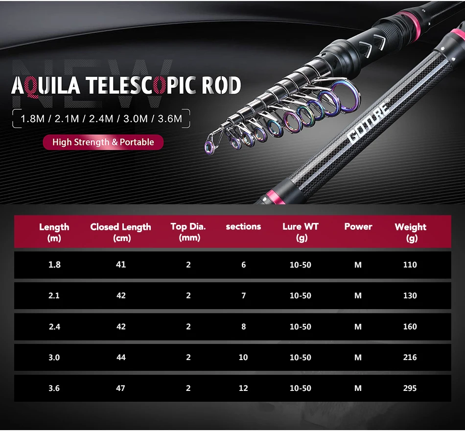 Kit combinado de caña de pescar giratoria telescópica Goture Aquila 1,8 M-3,6 M con serie 2000-4000 carrete giratorio de Tecnología japonesa